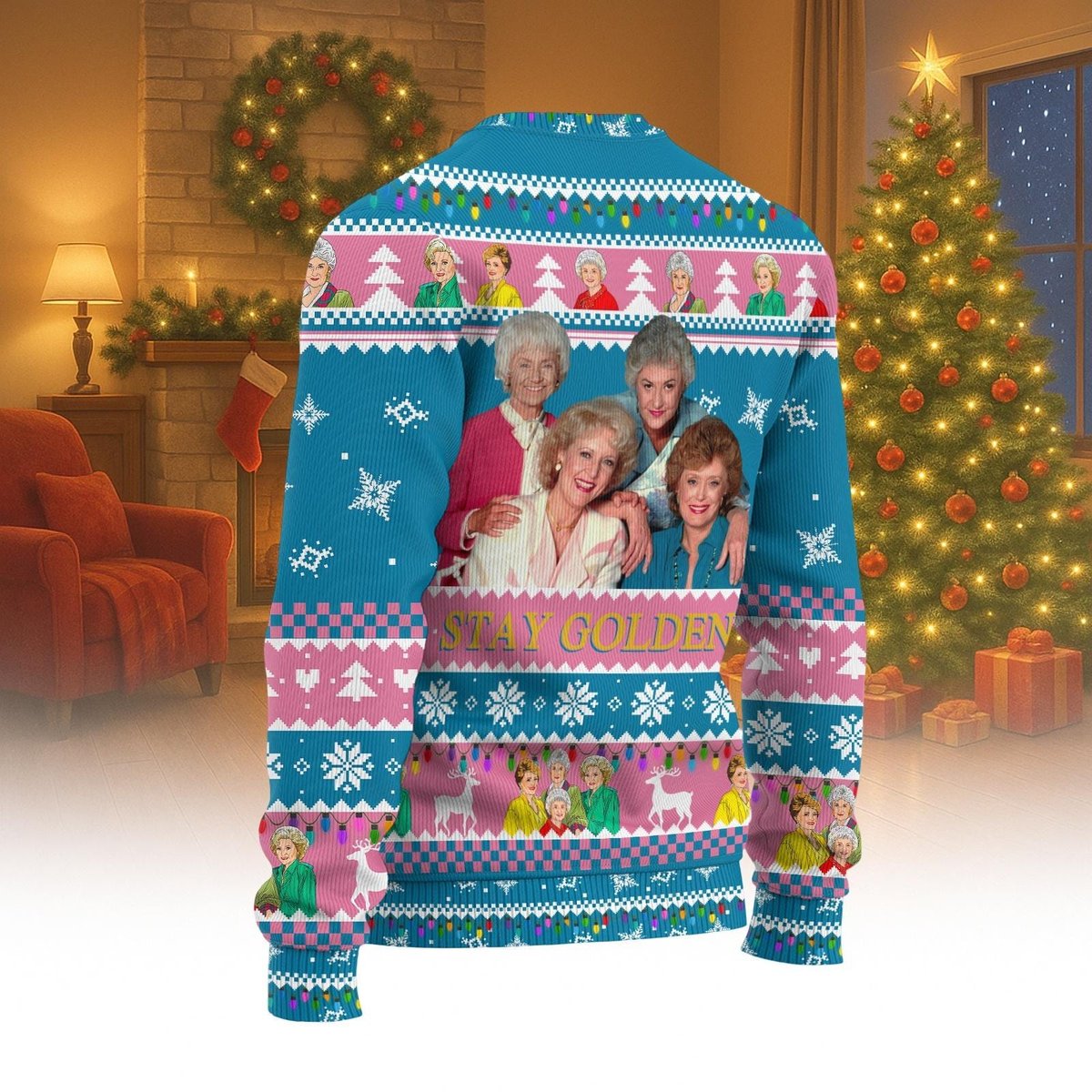 The Golden Girls Blue Ugly Christmas Sweater Stay Golden Funny Retro TV Show Knit Jumper