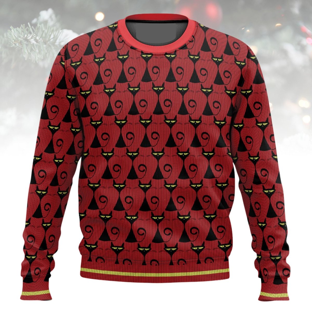 Cute Cat Pattern Family Matching Ugly Christmas Sweater Red Knit Jumper