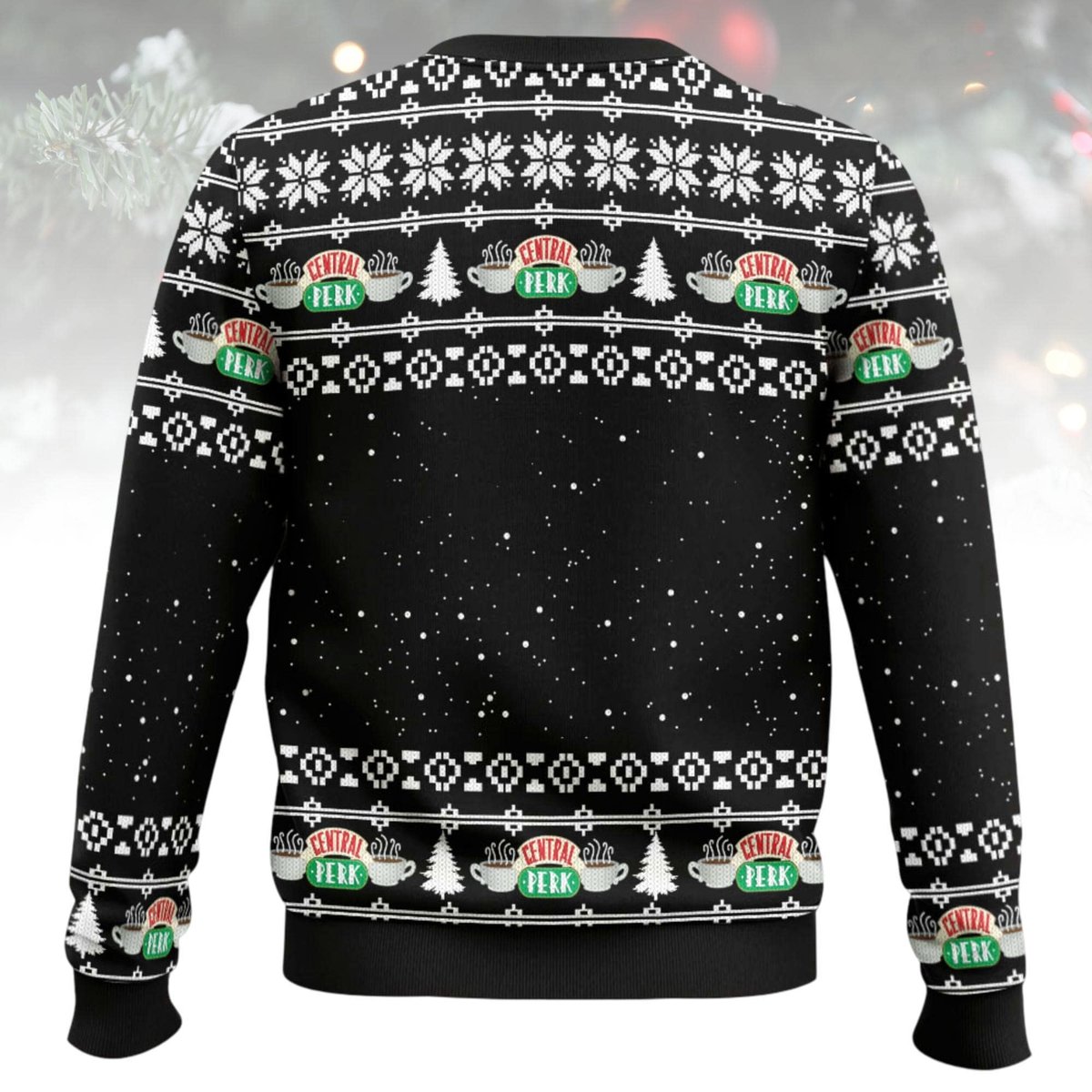 Friends TV Show Central Perk Funny Ugly Christmas Sweater Black White Jumper