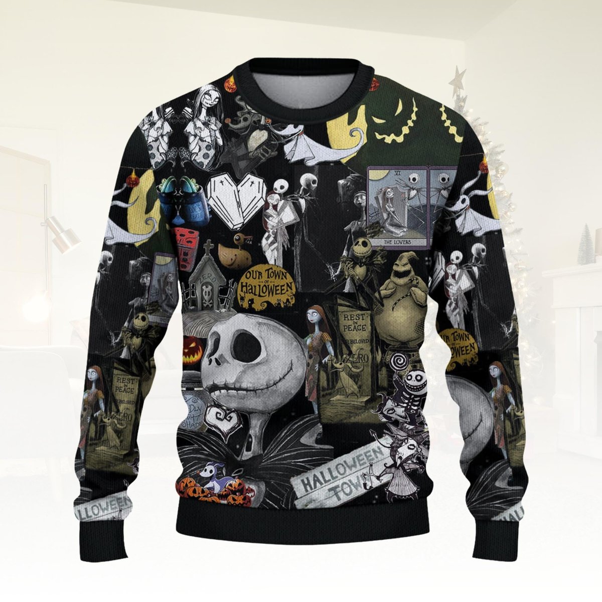 Jack Skellington Nightmare Before Christmas Halloween Town Ugly Sweater Black Jumper