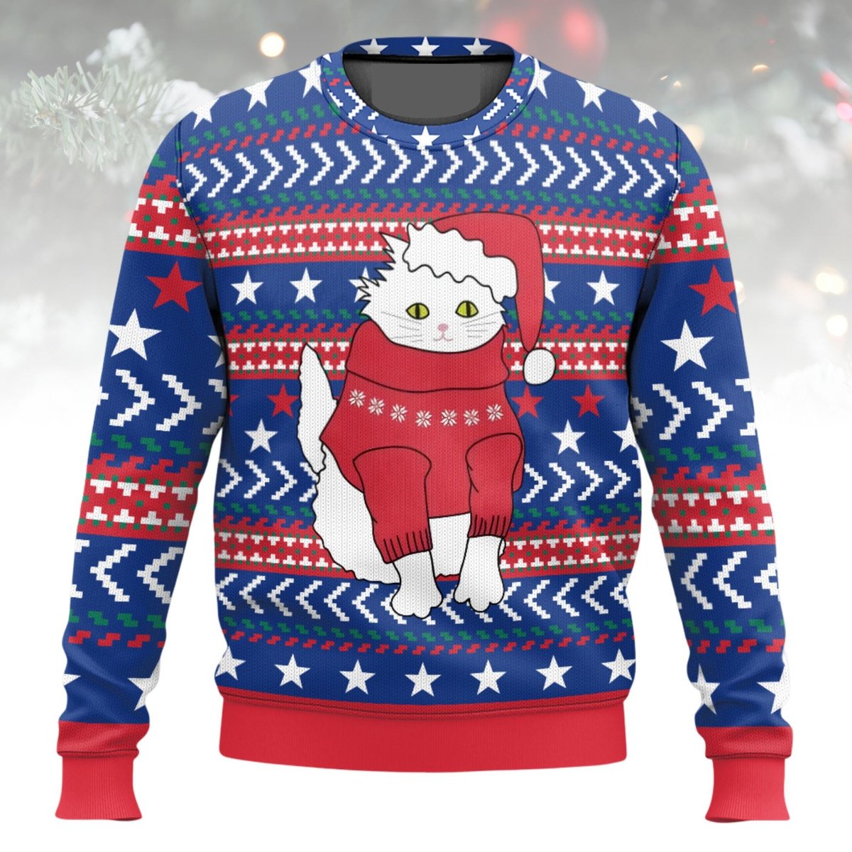 Santa Cat Blue Family Matching Ugly Christmas Sweater Cute Kitty Holiday Knit Jumper