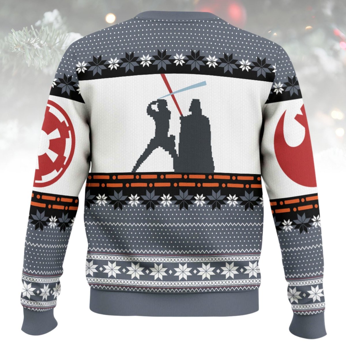 Star Wars Lightsaber Duel Pixel Art Ugly Christmas Sweater Luke vs Vader Gray Holiday Knit Jumper