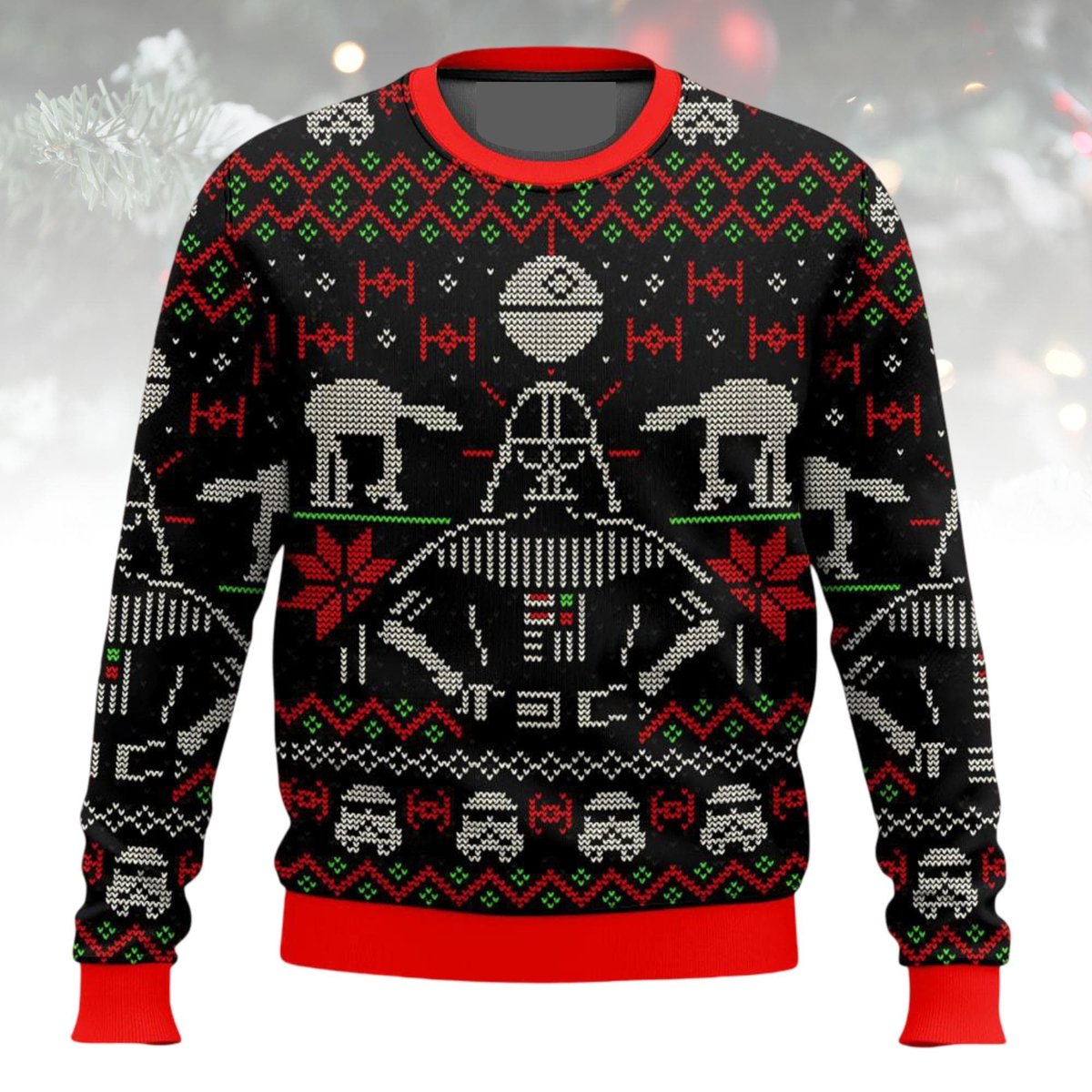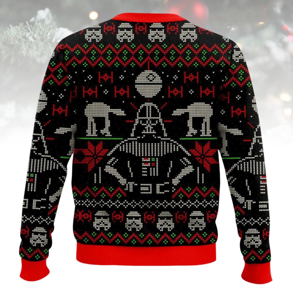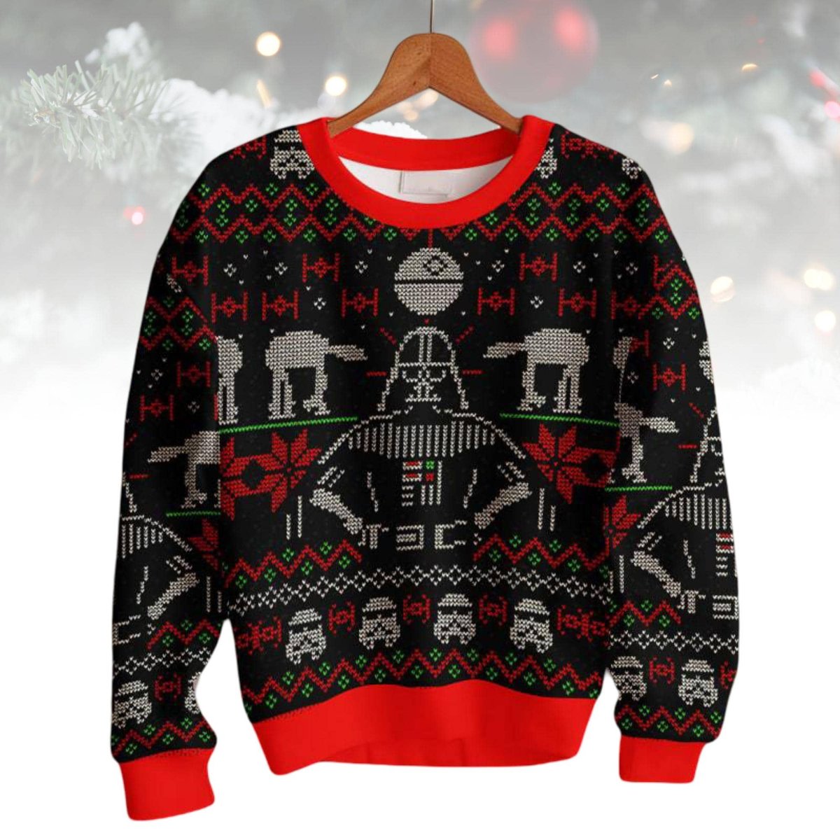 Star Wars Red and Green Darth Vader Ugly Christmas Sweater Retro Galactic Empire Holiday Knit Jumper