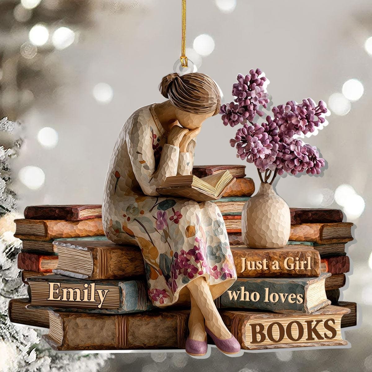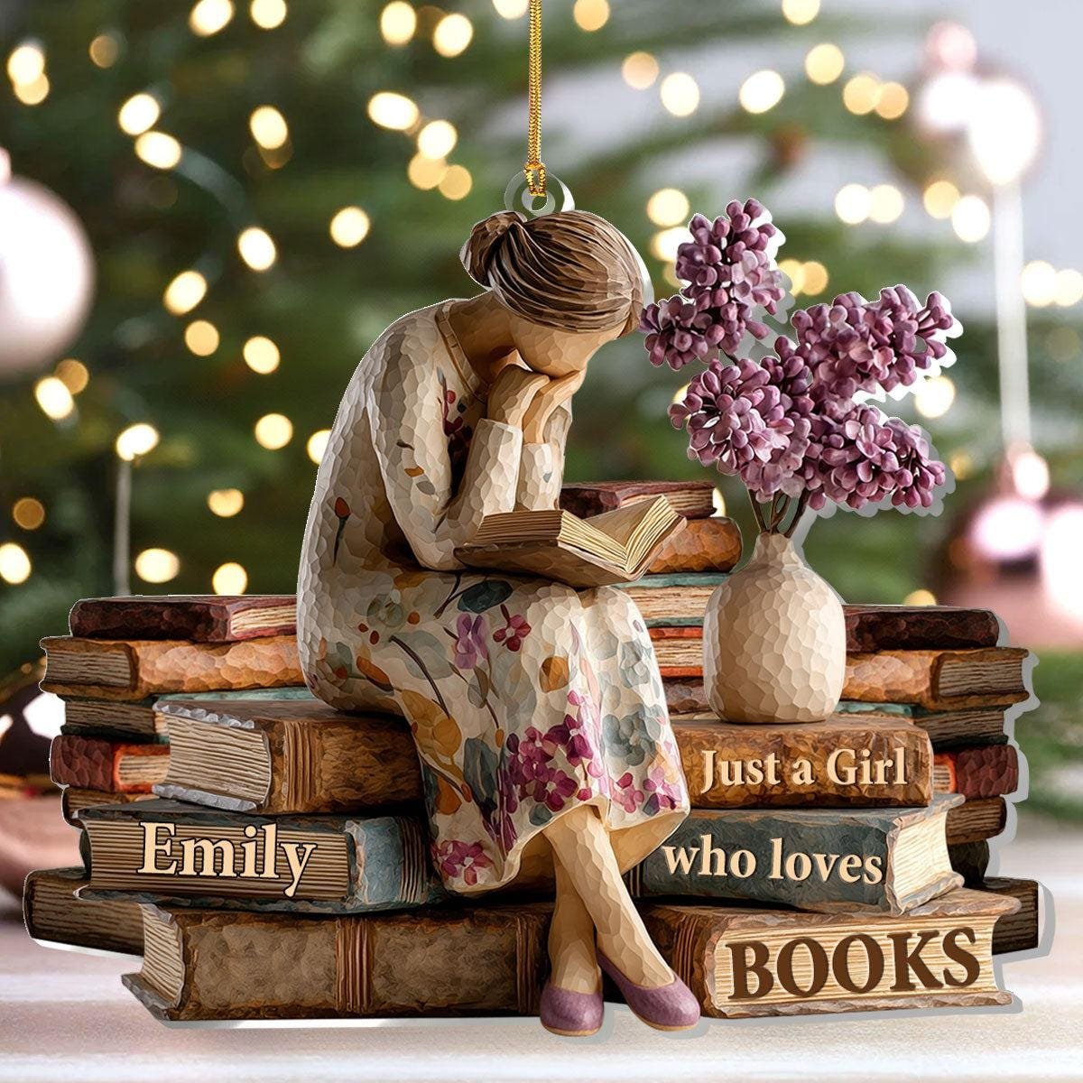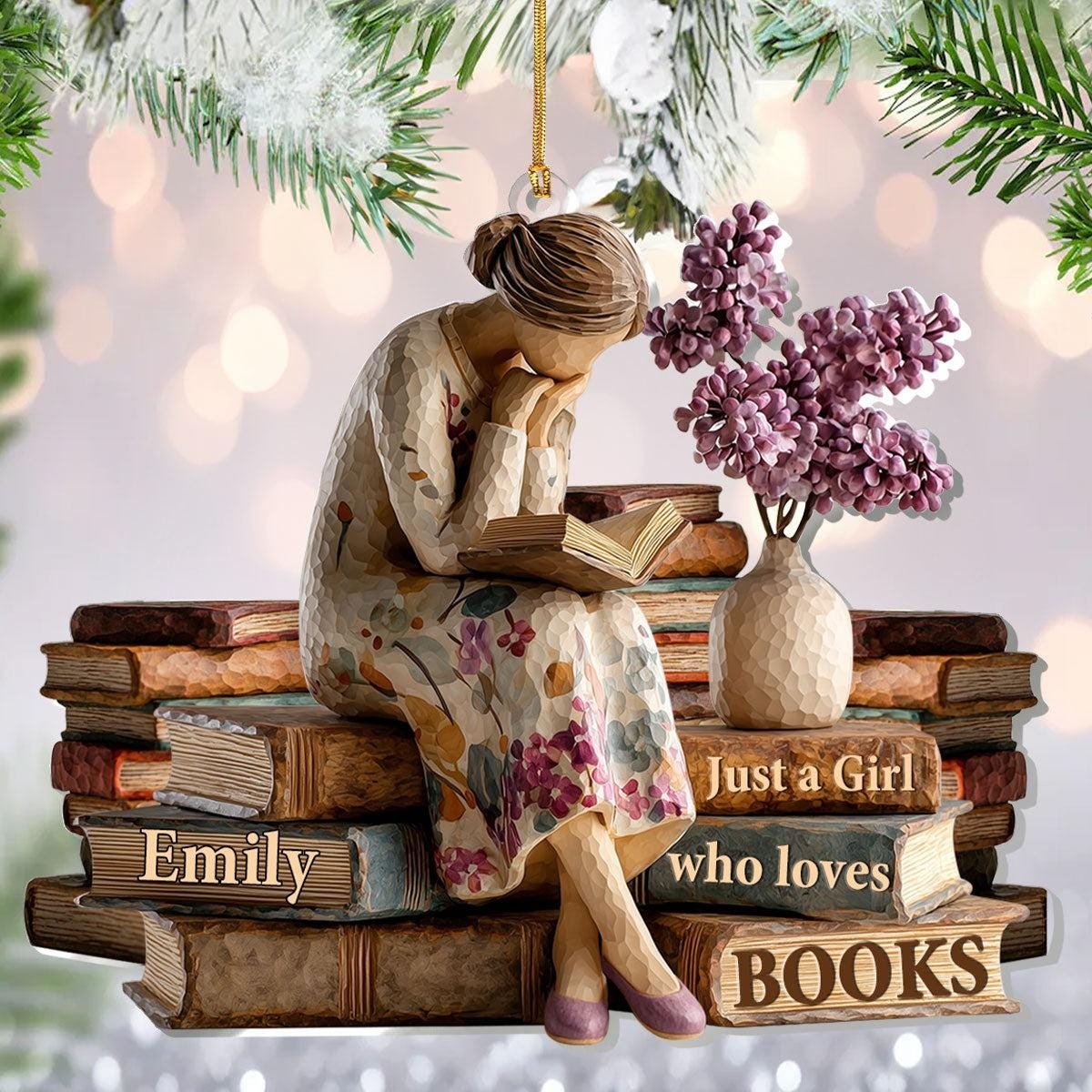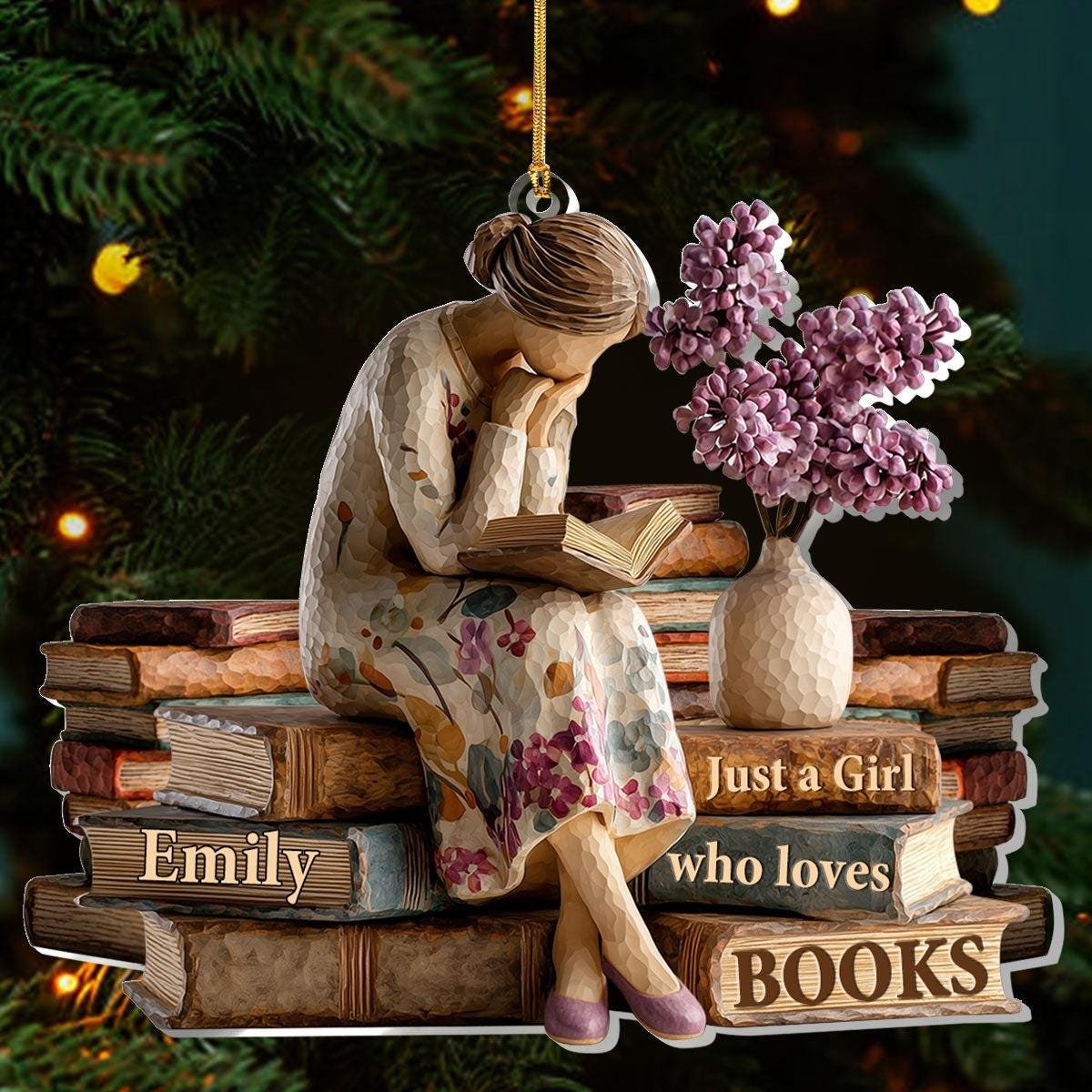 Book Lover X-Mas 2D Ornament Personalized Just A Girl Who Loves Books Acrylic Cozy Reading Holiday Decor for Bibliophiles and Dreamers