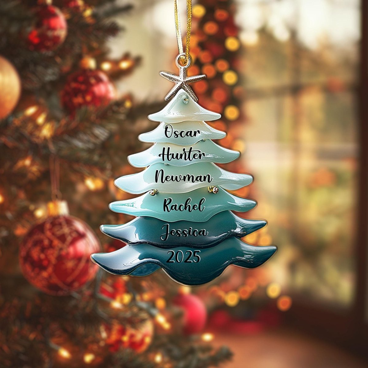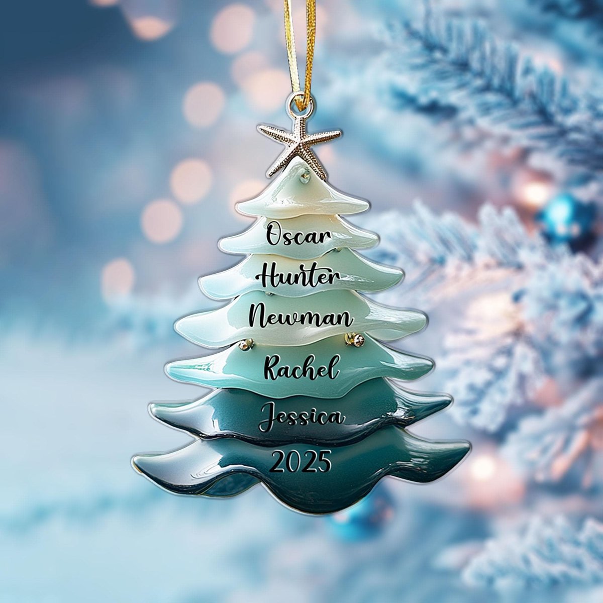 Coastal Family Custom Name Acrylic Ornament 2D Flat Custom Family Tree Sea Glass Style Christmas Gift Personalized Xmas Ornament 2025