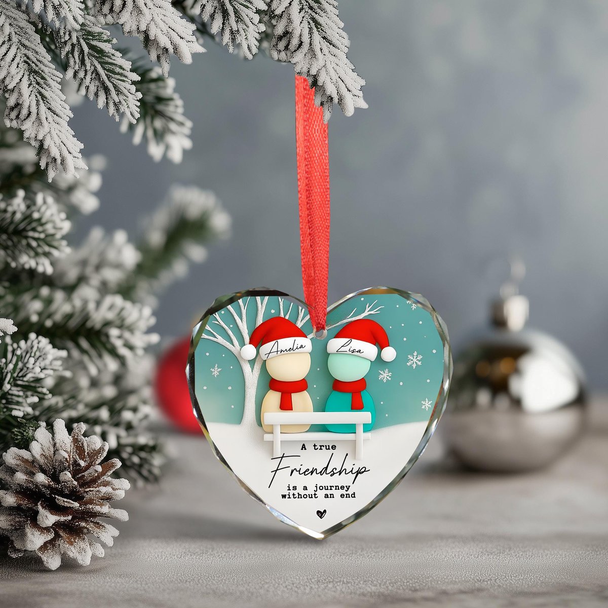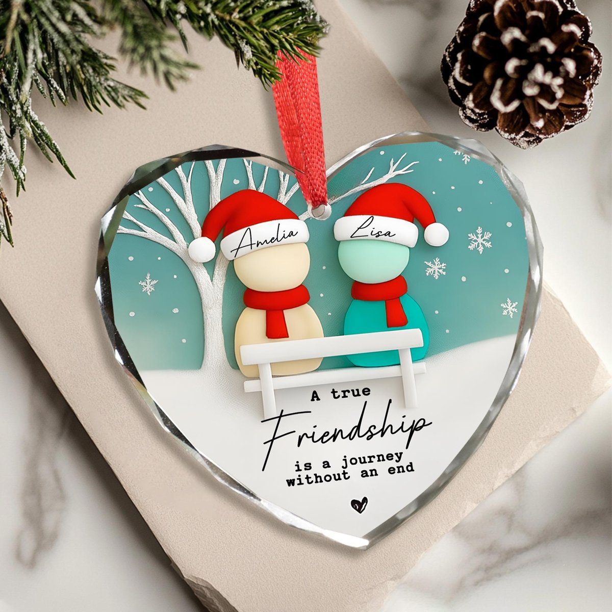 Custom Friendship Sea Glass Ornament Best Friends Christmas Gift Gift for Besties BFF Christmas Tree Decor Timeless Friendship Ornament