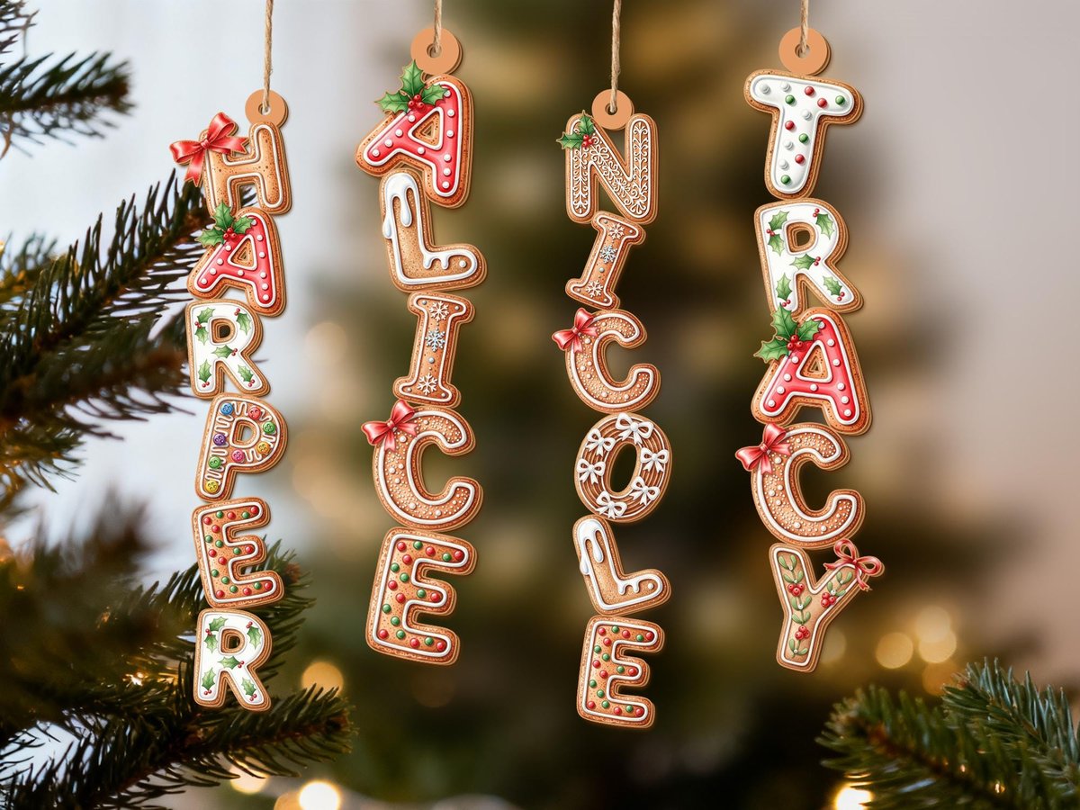 Custom Gingerbread Letter Ornament with Name Christmas Tag for Stockings Christmas Tree DecorChristmas Ornaments for FamilyKids Ornament