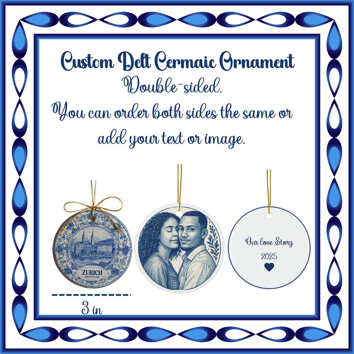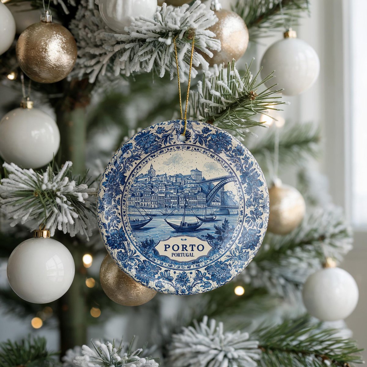 Custom Porto Portugal Ceramic Delft Ornament Christmas Delftware Blue Delftware city travel