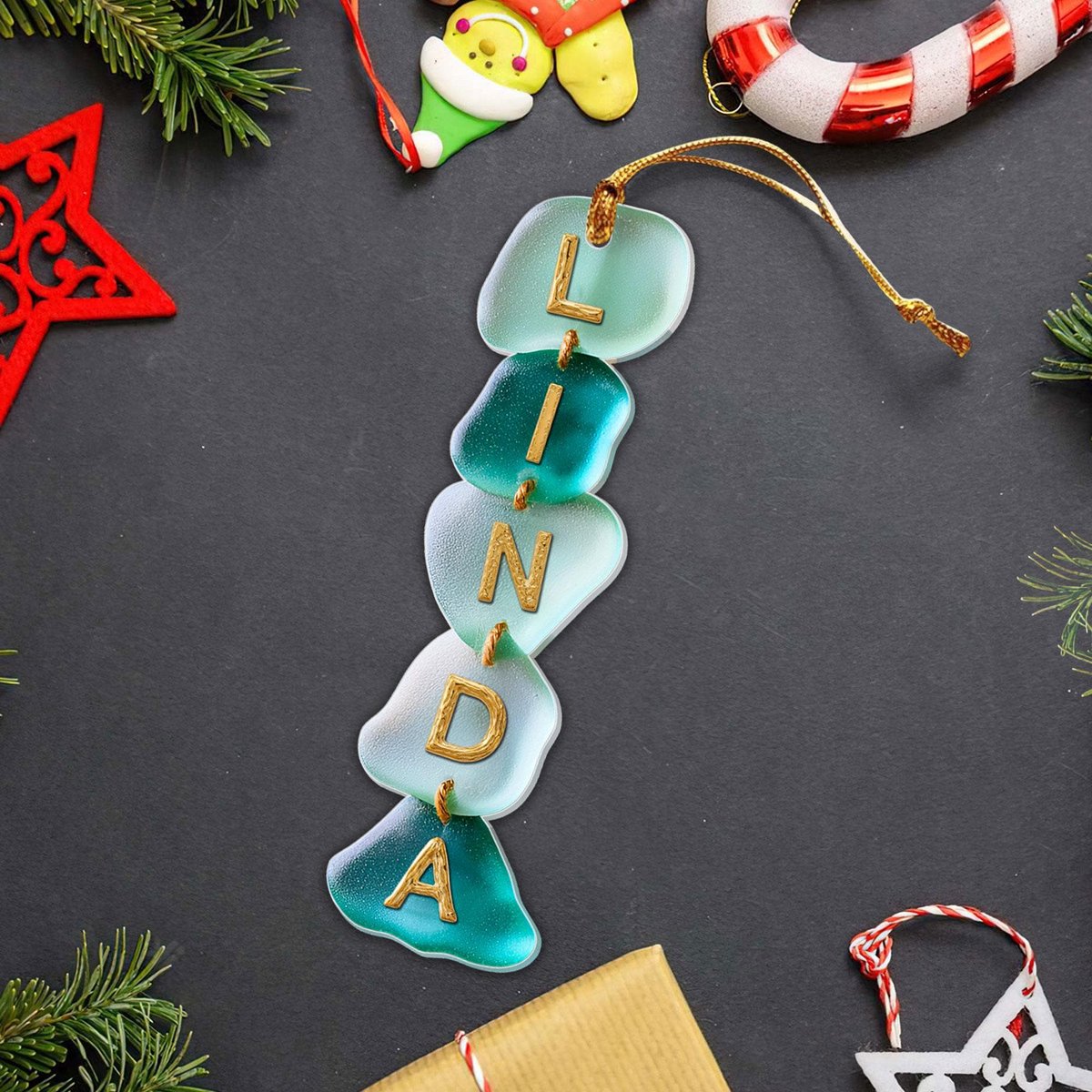 Custom Sea Glass Alphabet Acrylic Ornament Custom Letter Ornament For Kids Christmas Ornaments for Family Custom Name Family Ornament
