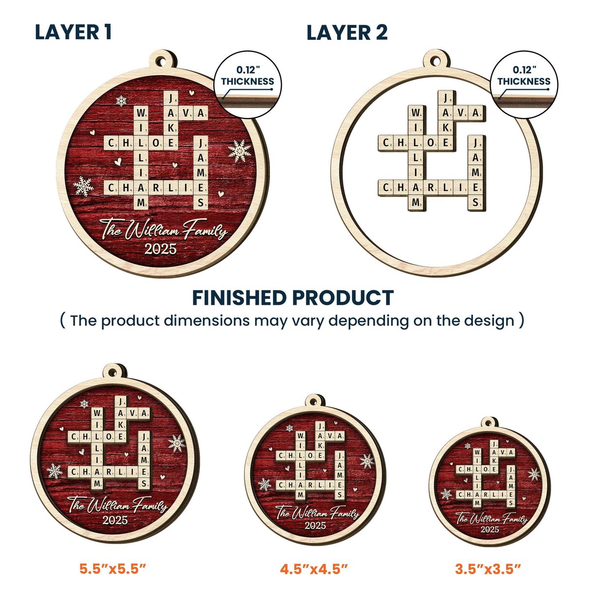 Family Name Scrabble Christmas Personalized Wooden Ornament Family Puzzle Name Ornament Custom Family Crossword Christmas Ornament
