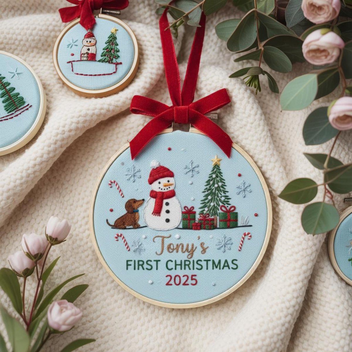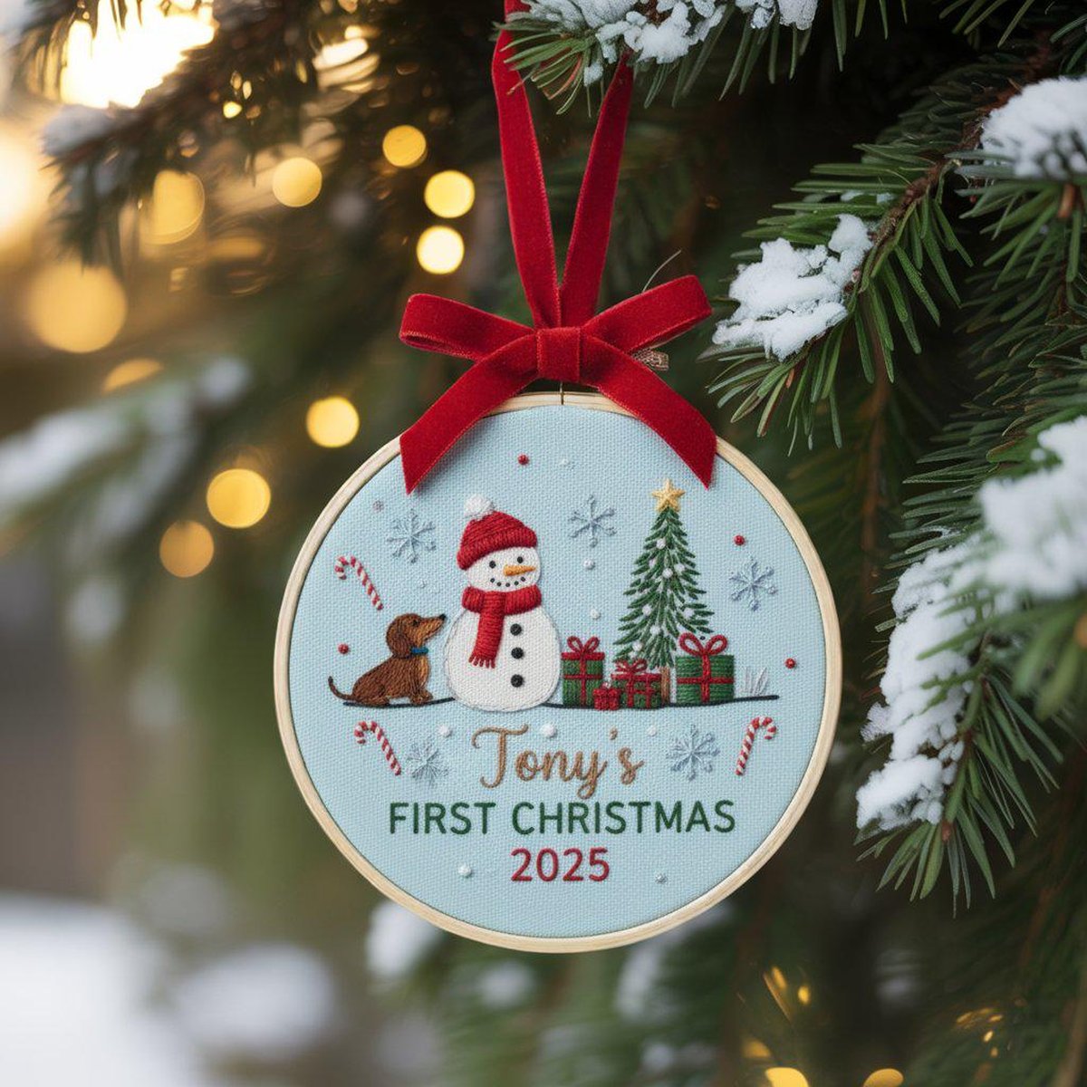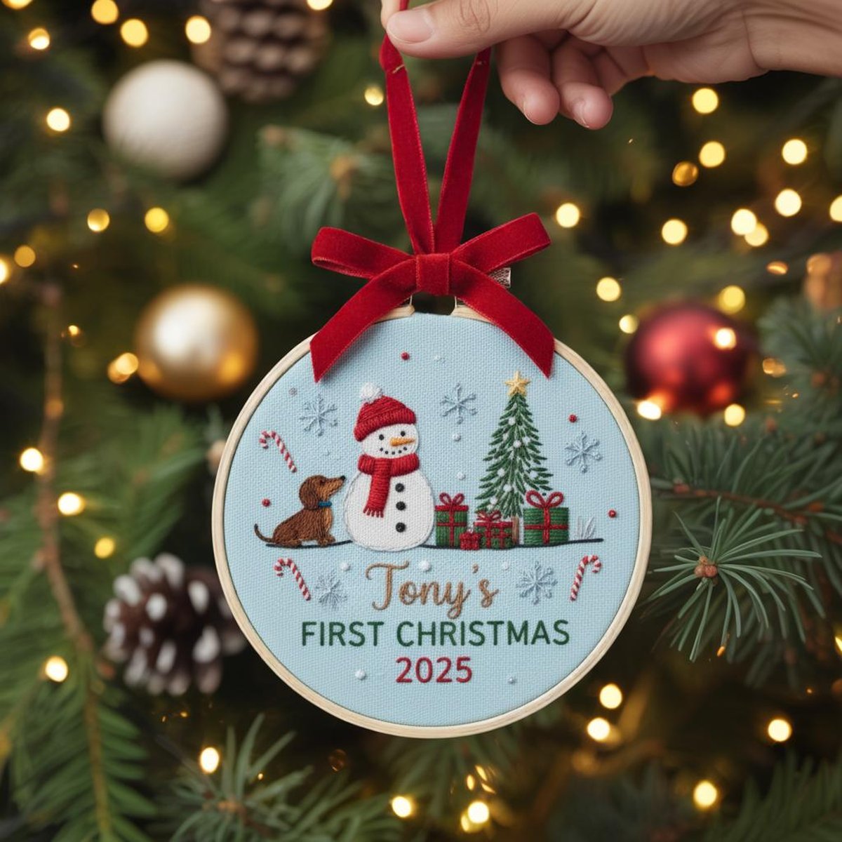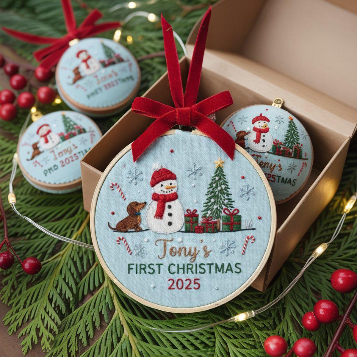Embroidered Snowman Baby39s First Christmas Ornament Handmade Holiday Decor Personalized Unique Gift for New Baby Custom Christmas Gift