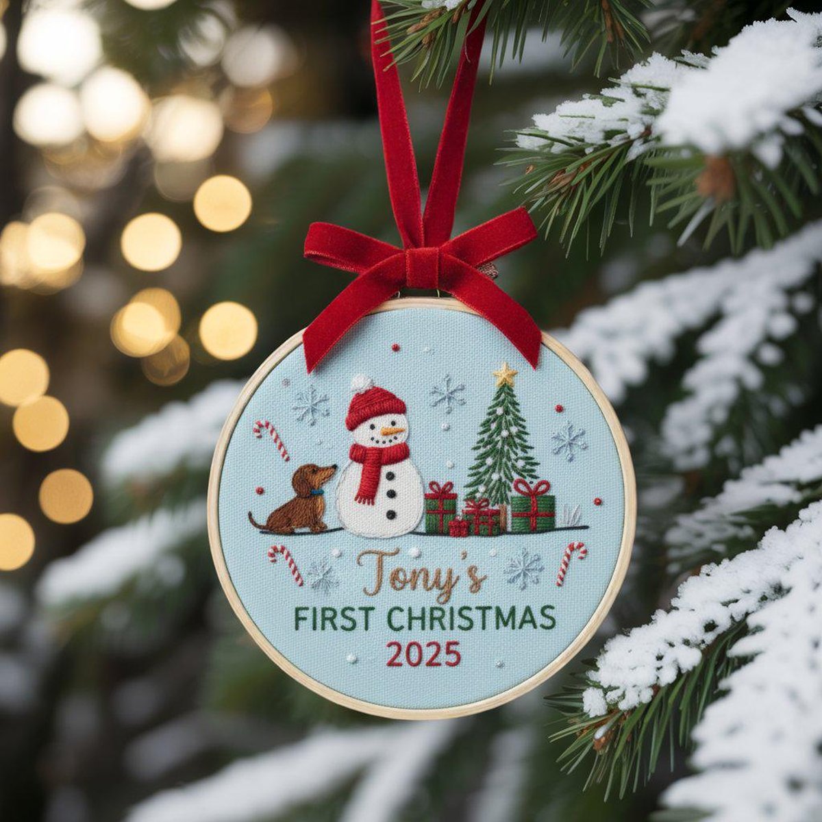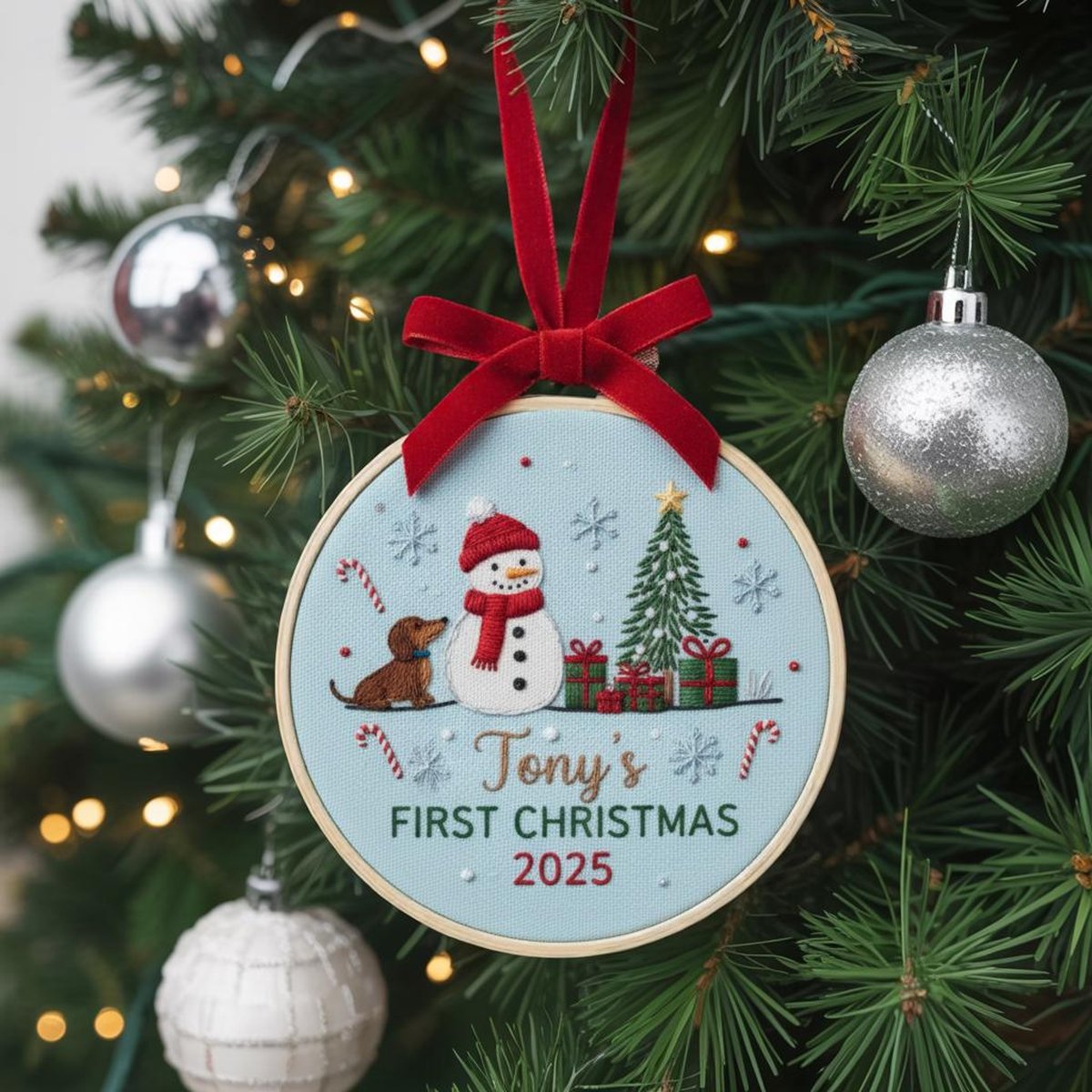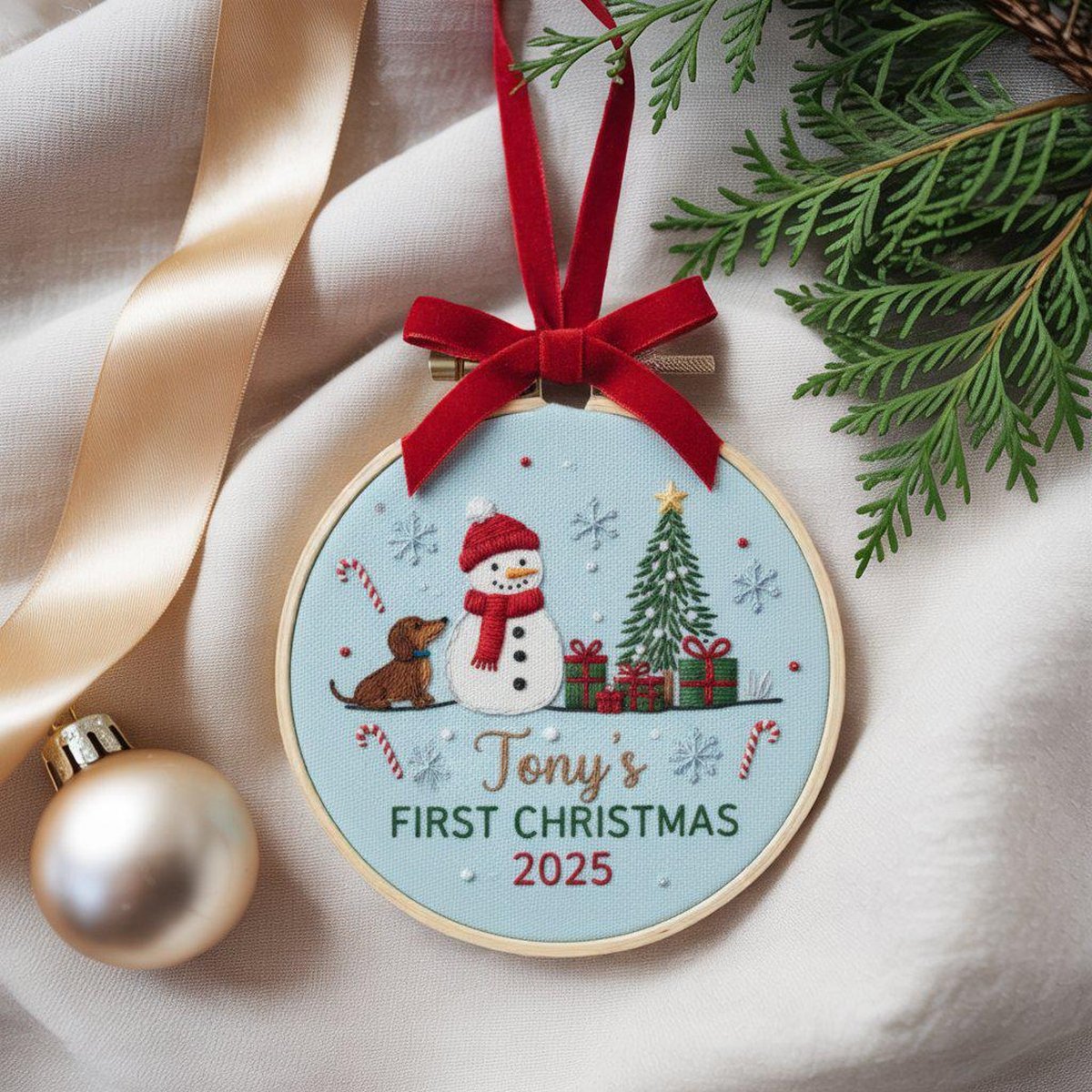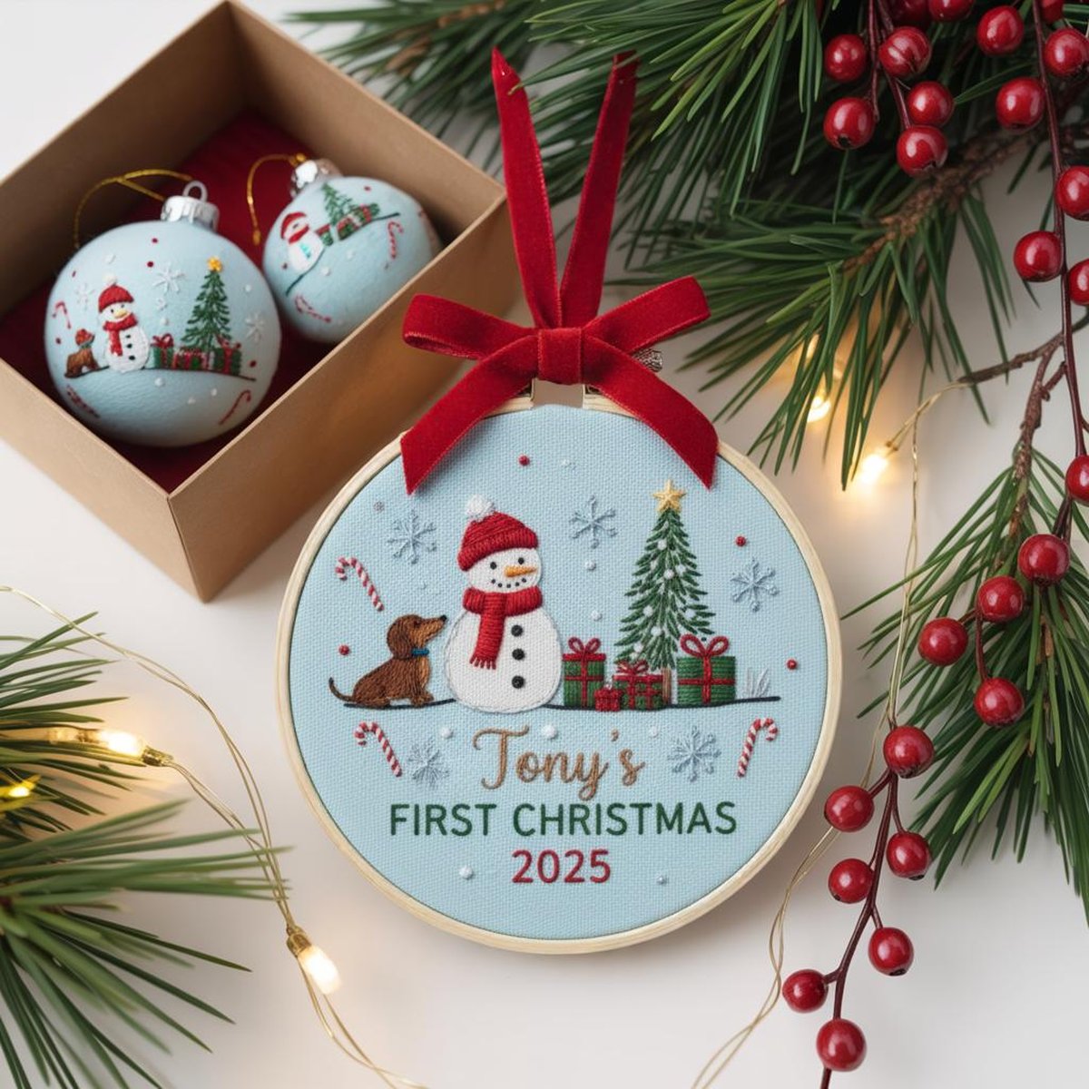 Embroidered Snowman Baby39s First Christmas Ornament Handmade Holiday Decor Personalized Unique Gift for New Baby Custom Christmas Gift