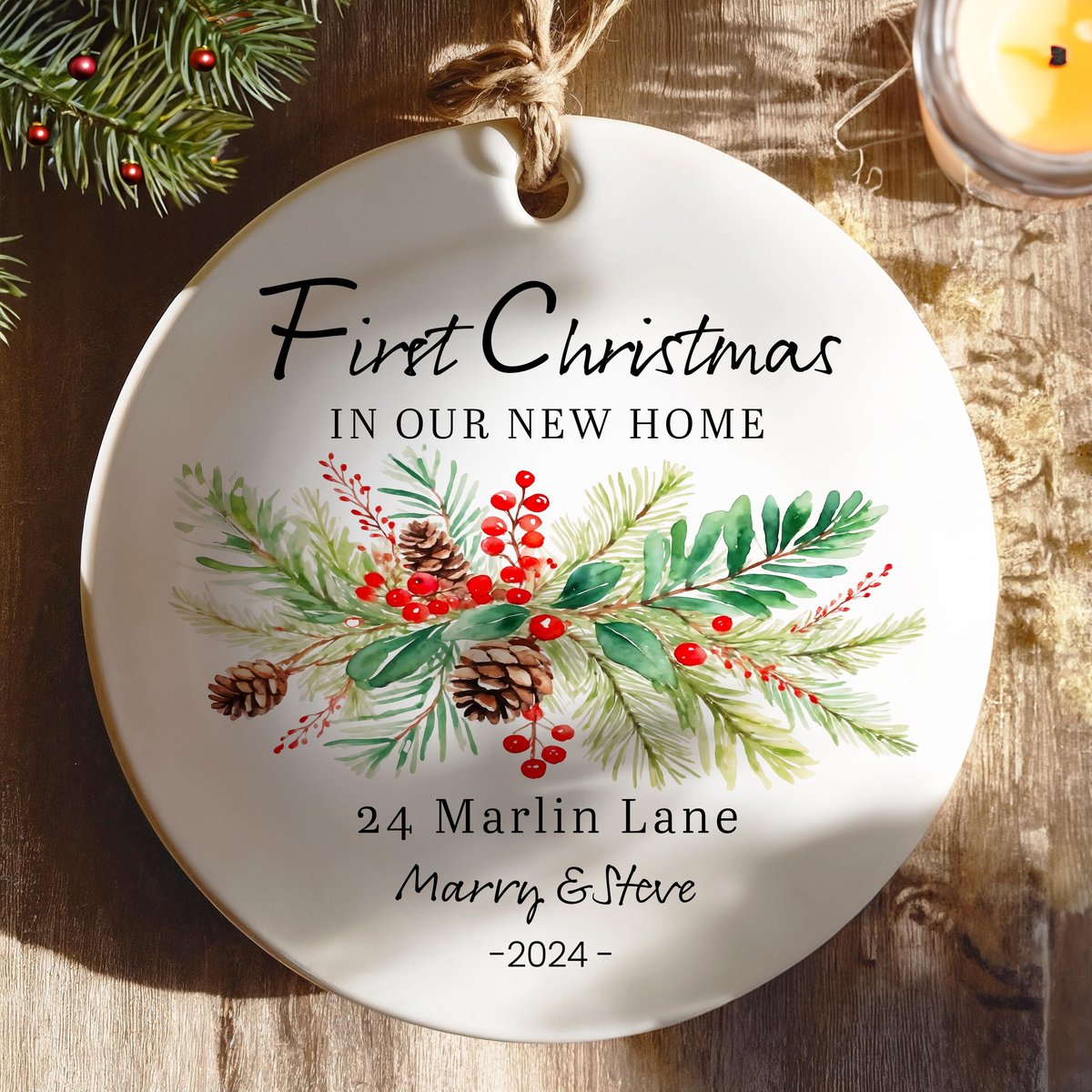First Christmas in Our New Home Christmas Ornaments House Address Ornament 2024 New Home Ornament Our First Home Keepsake New House Gift