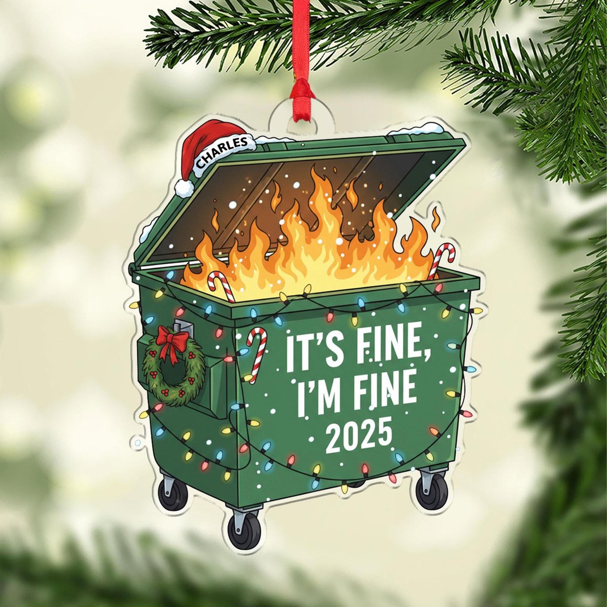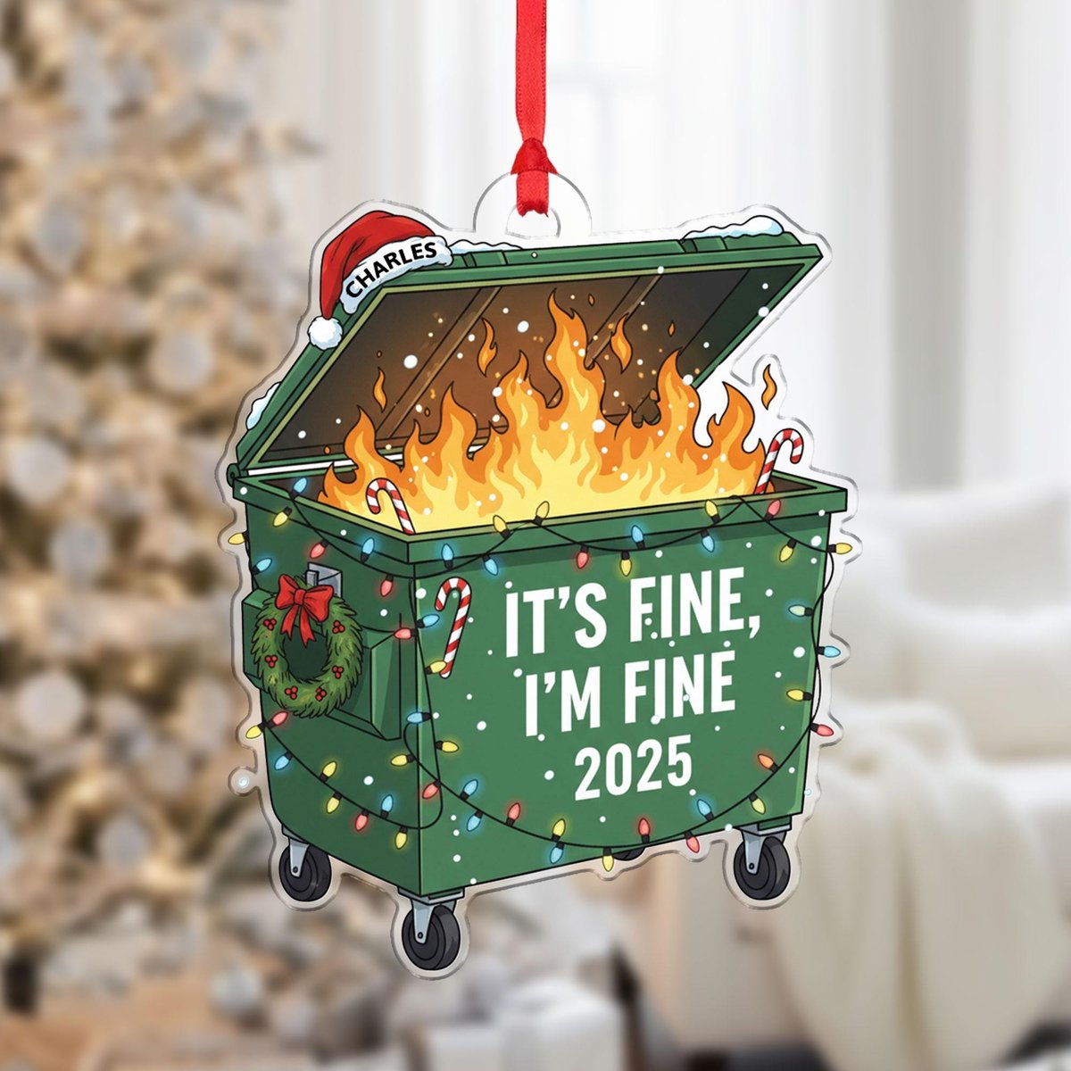 Funny Dumpster Fire Ornament 2025 Personalized Christmas Tree Decoration