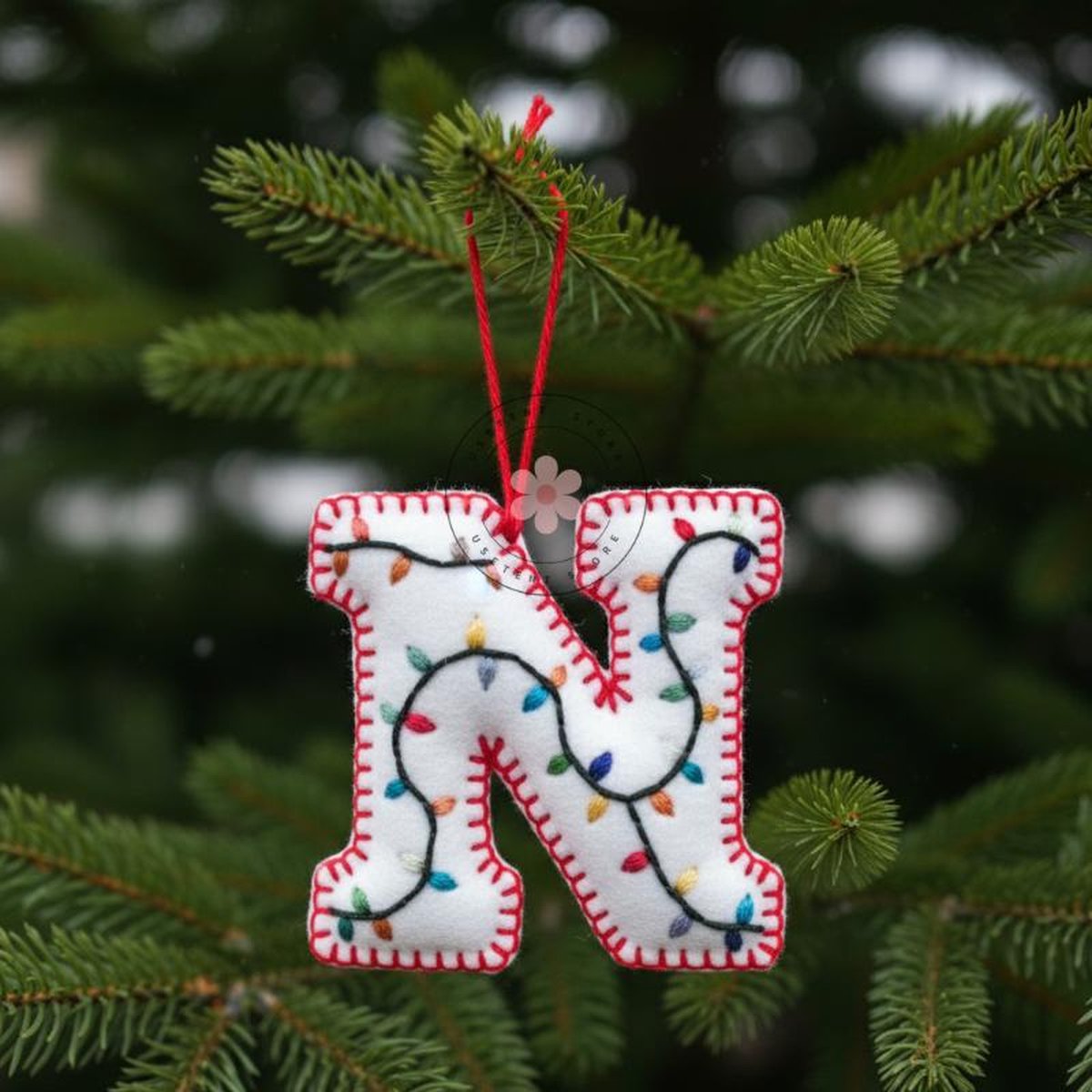 Hand Embroidered Initial Christmas Ornament Personalized Canvas Keepsake