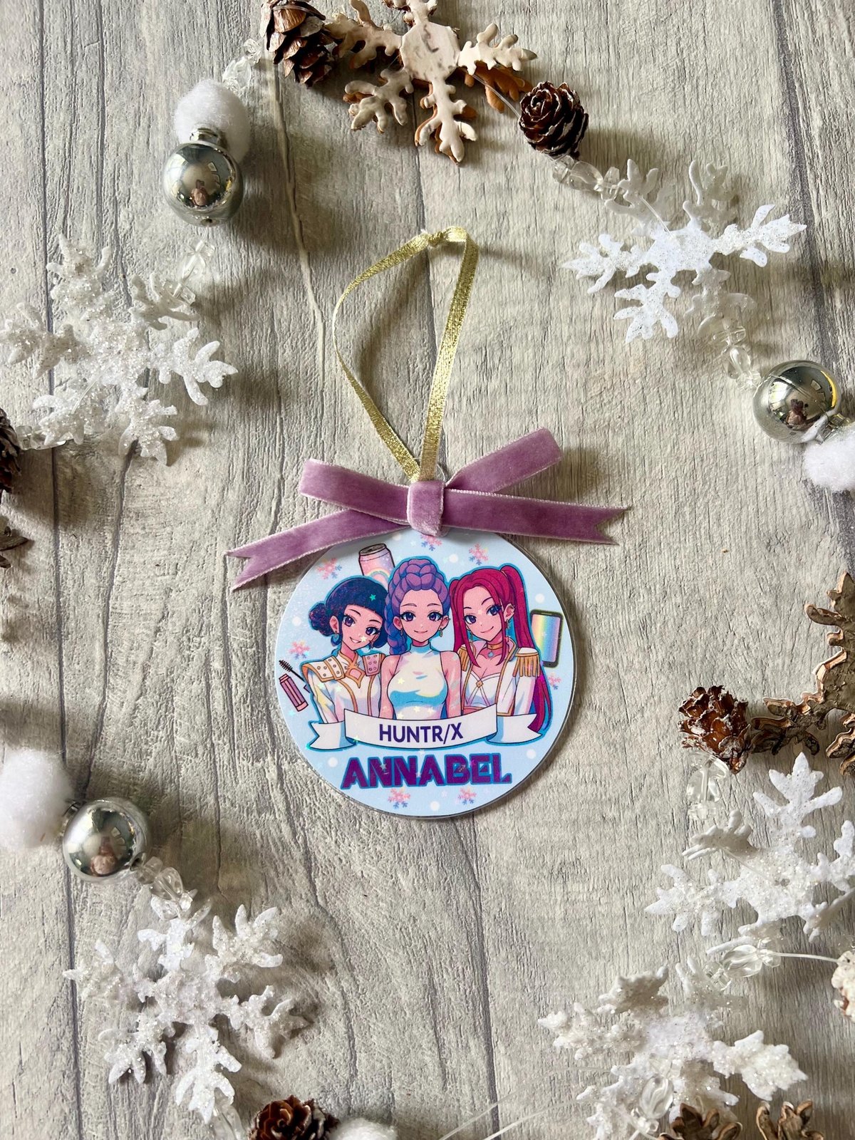 K-Pop Demon Hunters Personalised Christmas Bauble Tree Decoration Ornament Huntrix or Saja Boys design