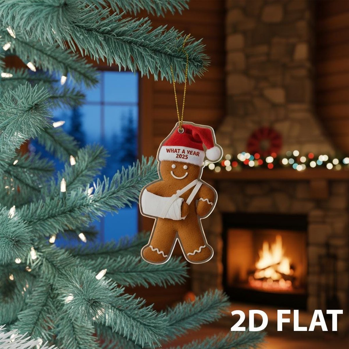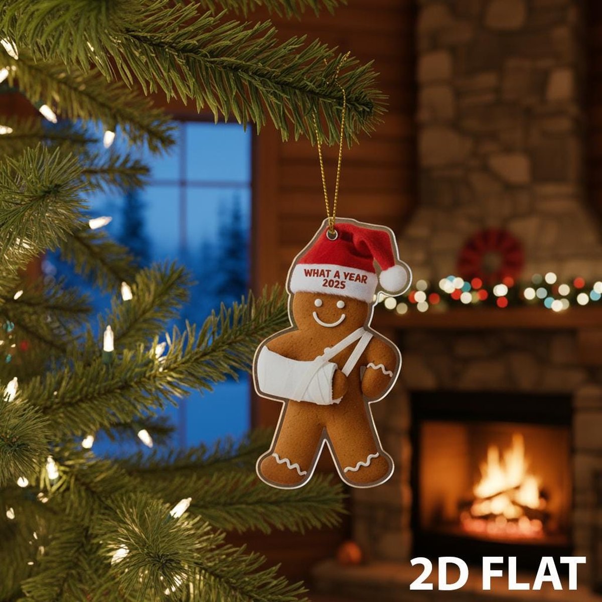 Injury Christmas 2D FLAT Ornament Funny Gingerbread Xmas Ornament Broken Arm Holiday Decor What a Year 2025 Ornament Gift