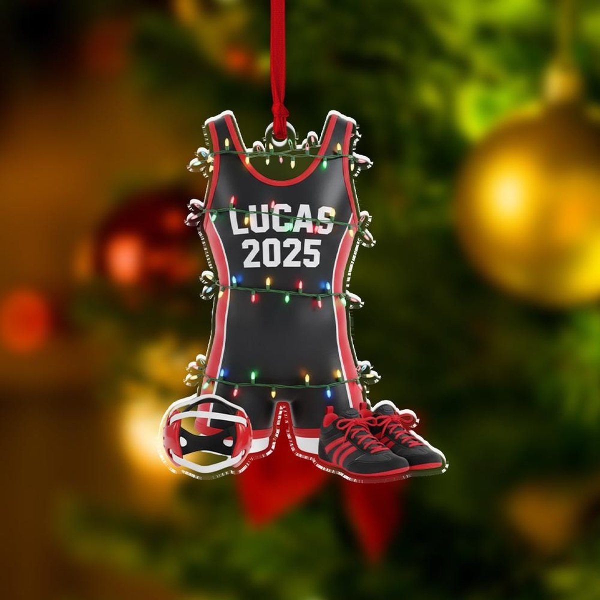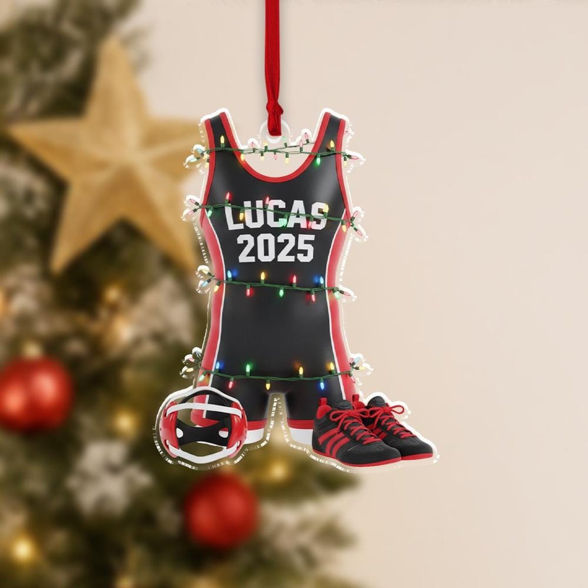 Personalized Acrylic Ornament Custom Name Wrestling Singlet with Shoes Headgear Scene