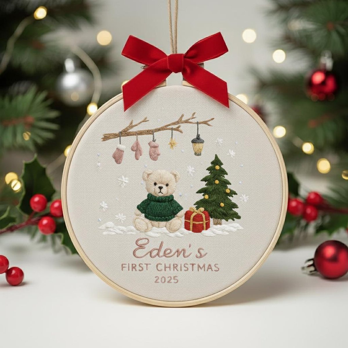 Personalized Babys First Christmas Ornament Custom Embroidered Keepsake Newborn Holiday Gift Baby Girl Christmas Decoration