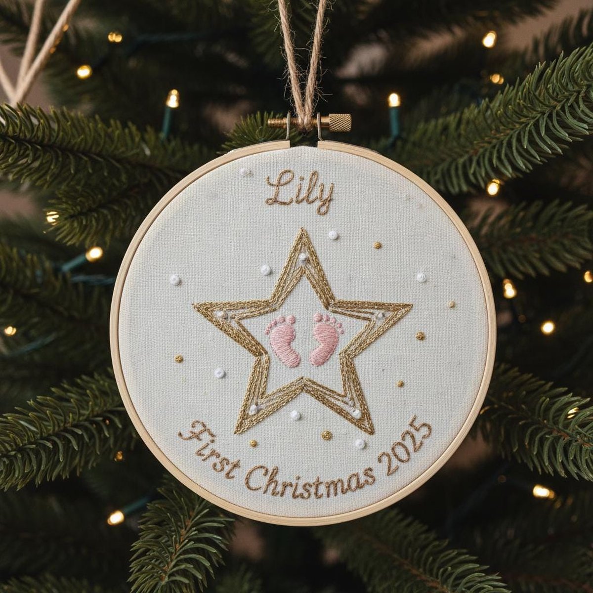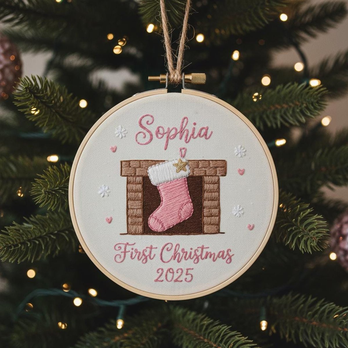 Personalized Baby39s First Christmas Hand Embroidered Ornament Handmade Holiday Decor Unique Gift for New Baby Custom Christmas Tree Gift