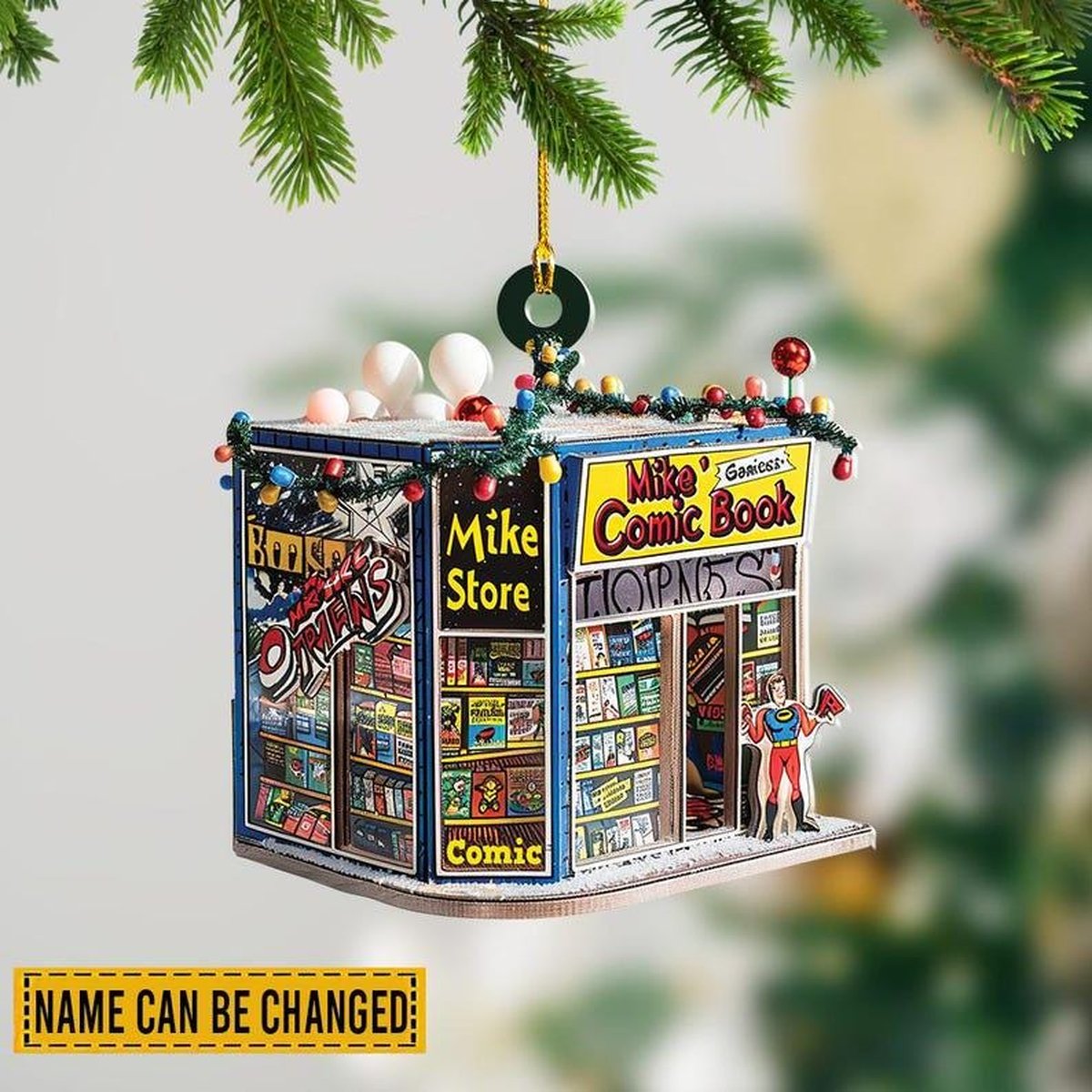 Personalized Comic Book Store Ornament Custom Name 2D Shop Christmas DecorationFlat Superhero Gift