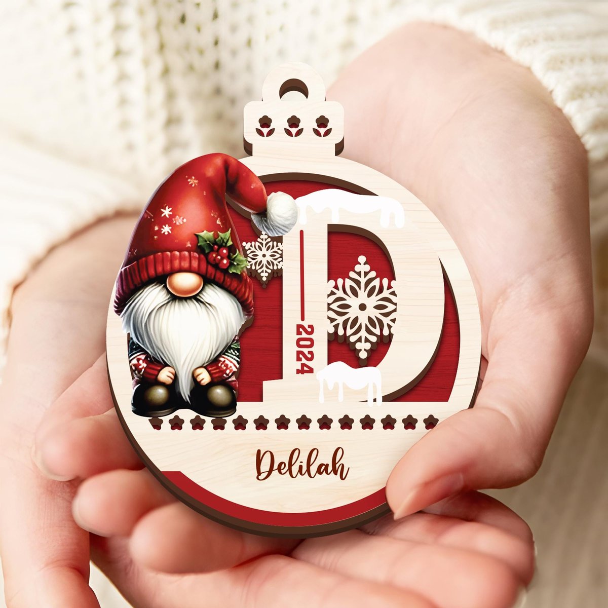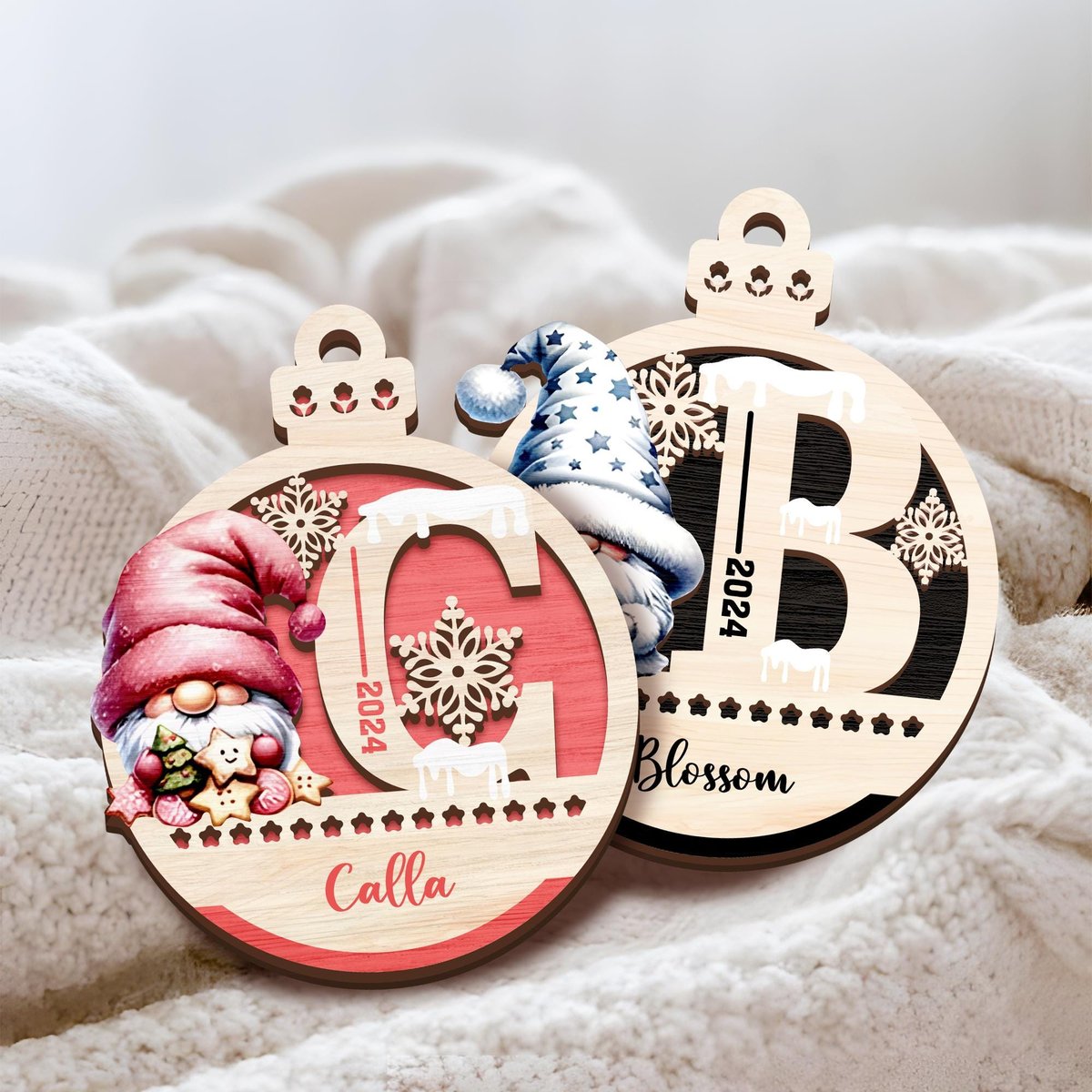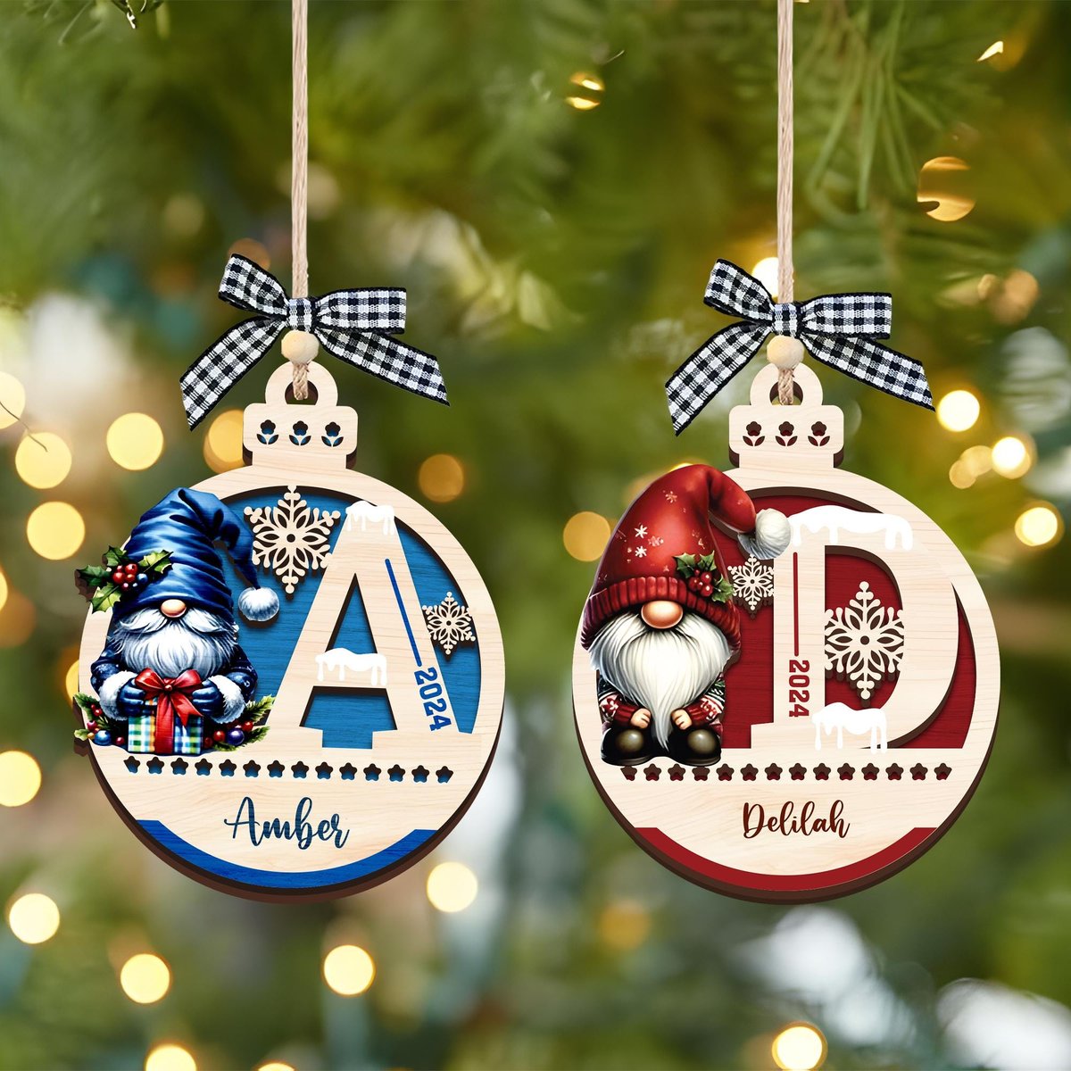 Personalized Gnomes Christmas Ornament Wooden custom name tags Letter Name Ornament Custom Gnome Family ornament Gift Xmas Gift For Kids