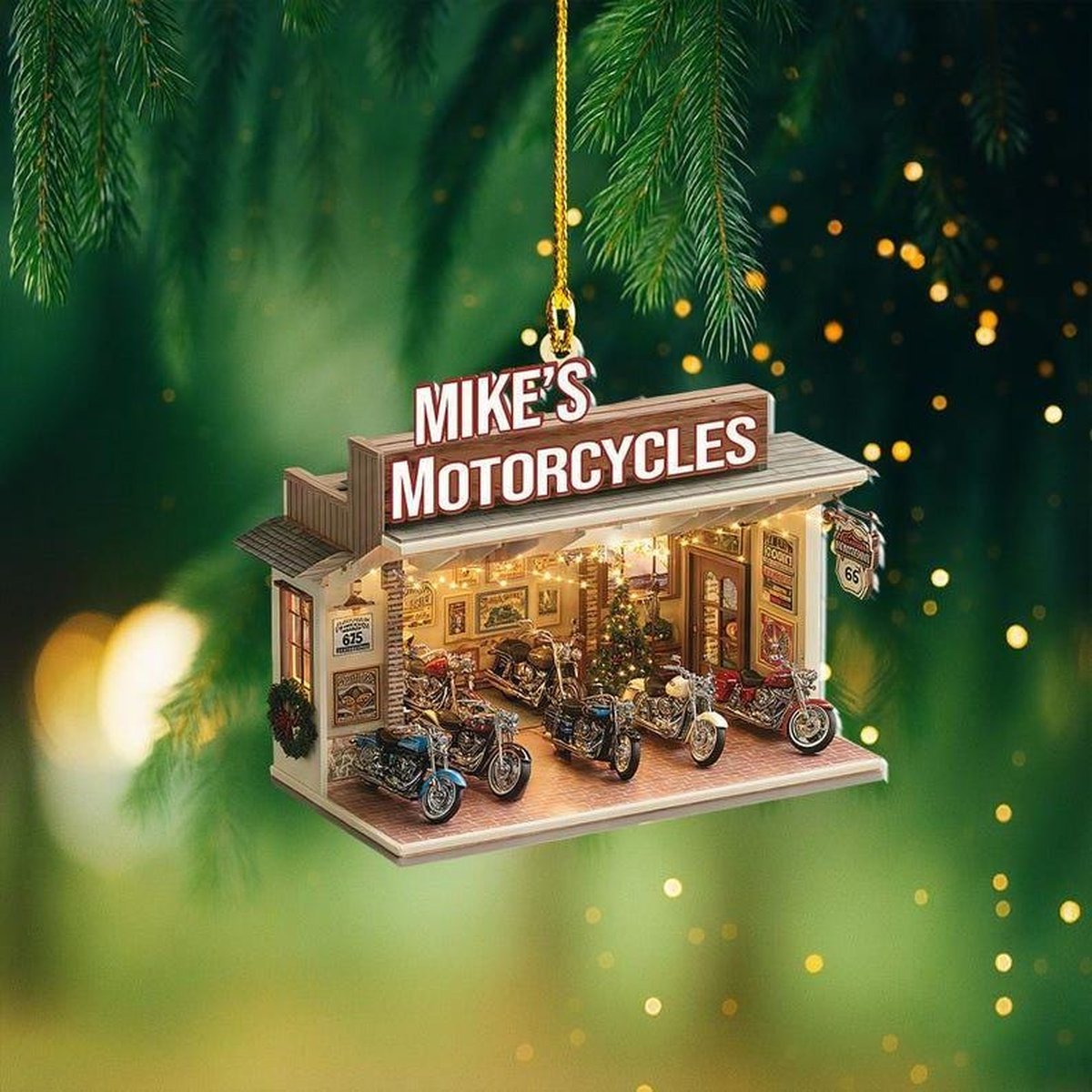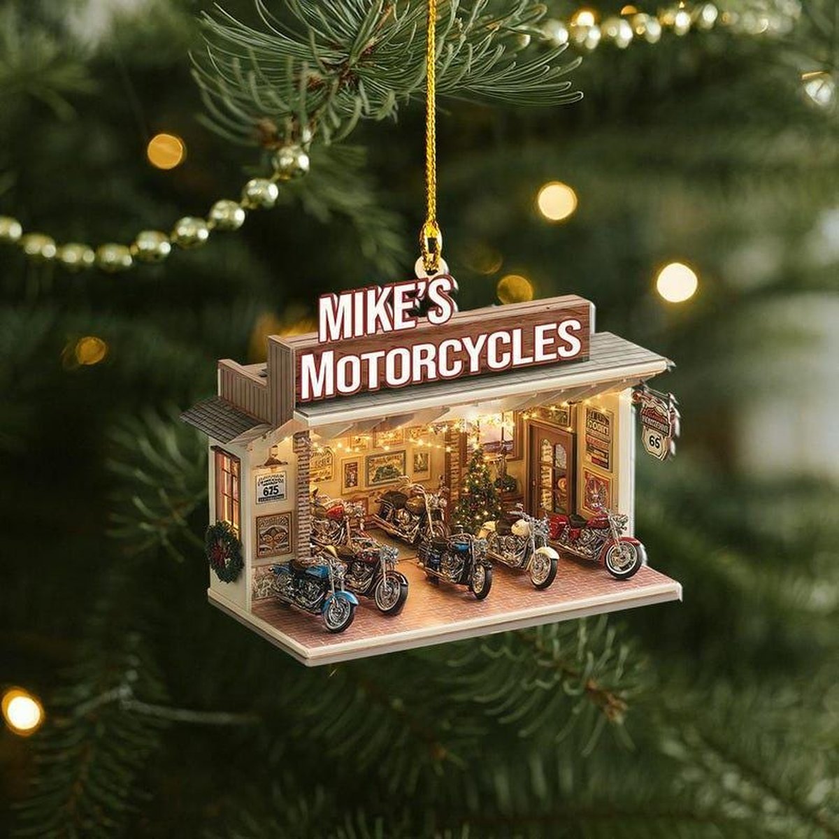 Personalized Motorcycle Shop Ornament Custom Name Vintage Biker Garage Christmas Decoration with Motorcycles