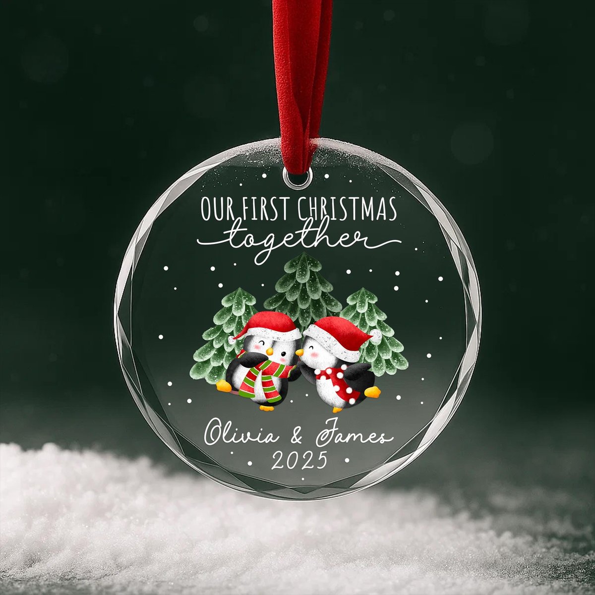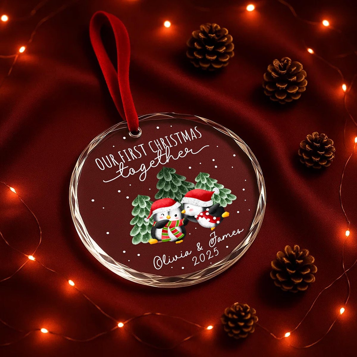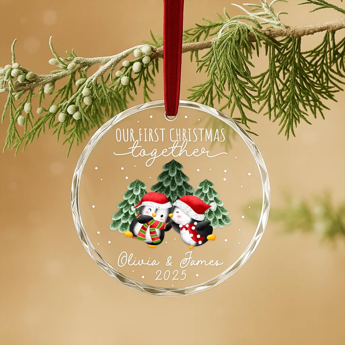 Personalized Our First Christmas Together Ornament Custom Couple Names Year Heart Glass Penguin Holiday Keepsake OR094