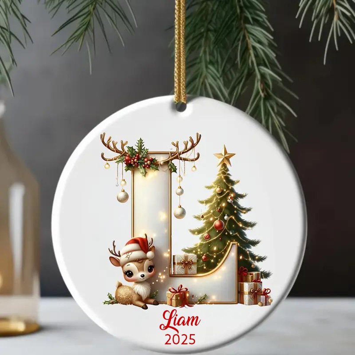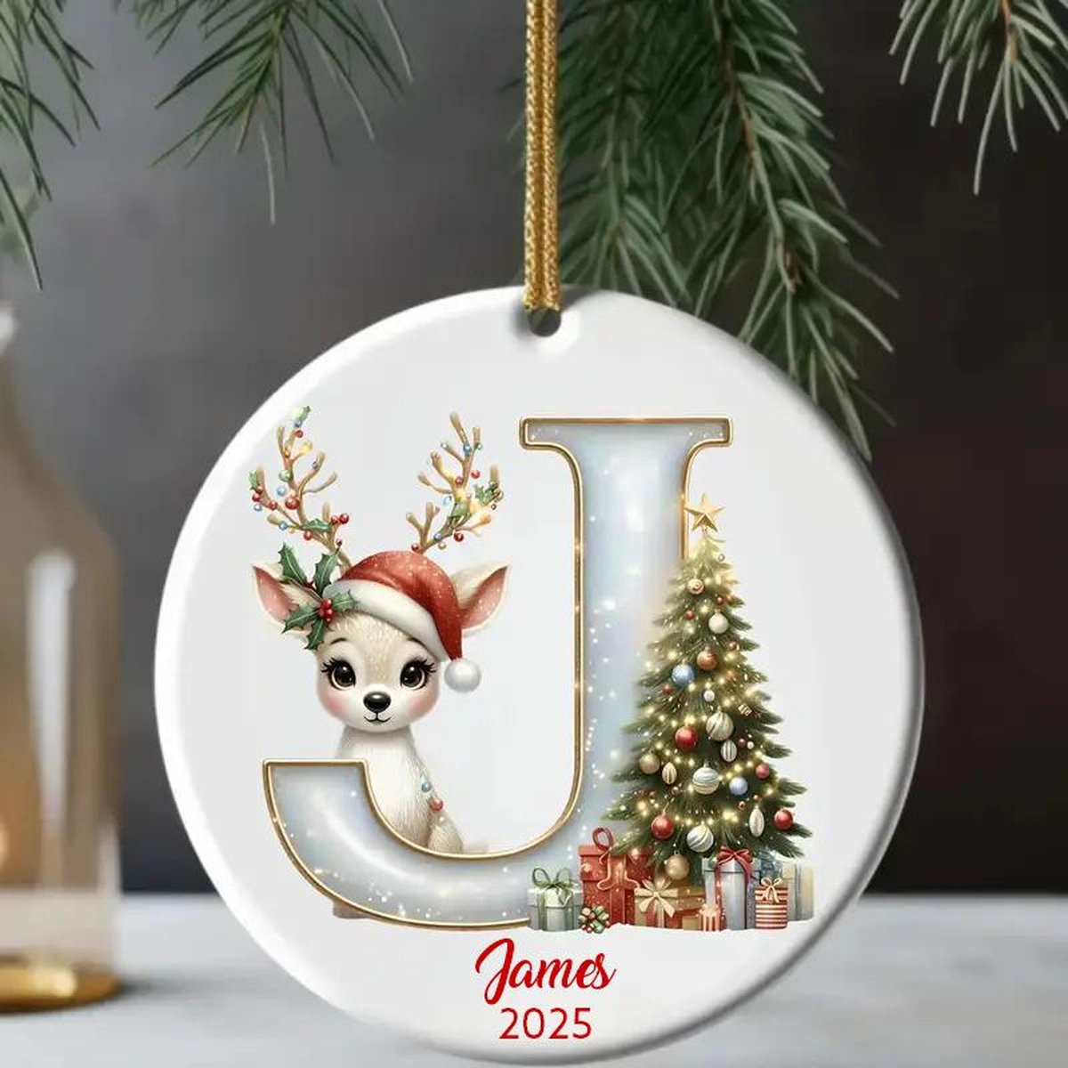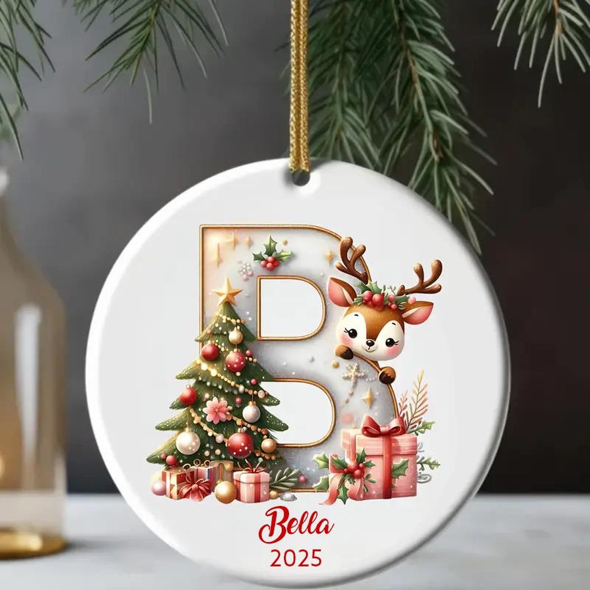 Personalized Reindeer Ornament Letter Name Ornament Custom Initial Ornament Monogram Ornament 2025 Family Ornament Kid Ornament
