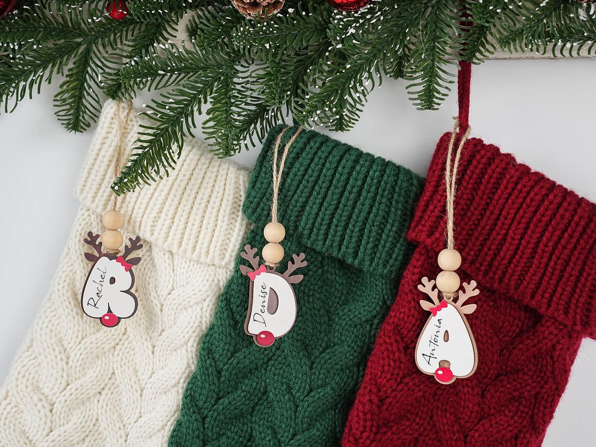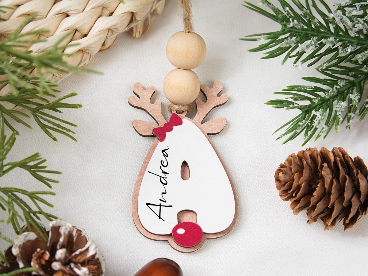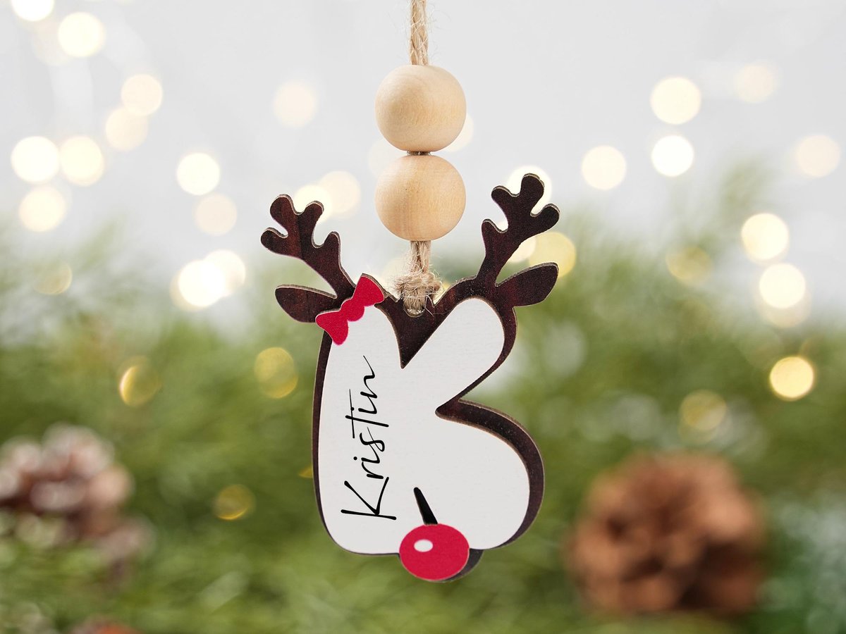 Personalized Reindeer Letter Ornaments Custom Christmas Stocking Tags Wooden Name Tag Holiday Gifts for the Family Initial Ornament 2025