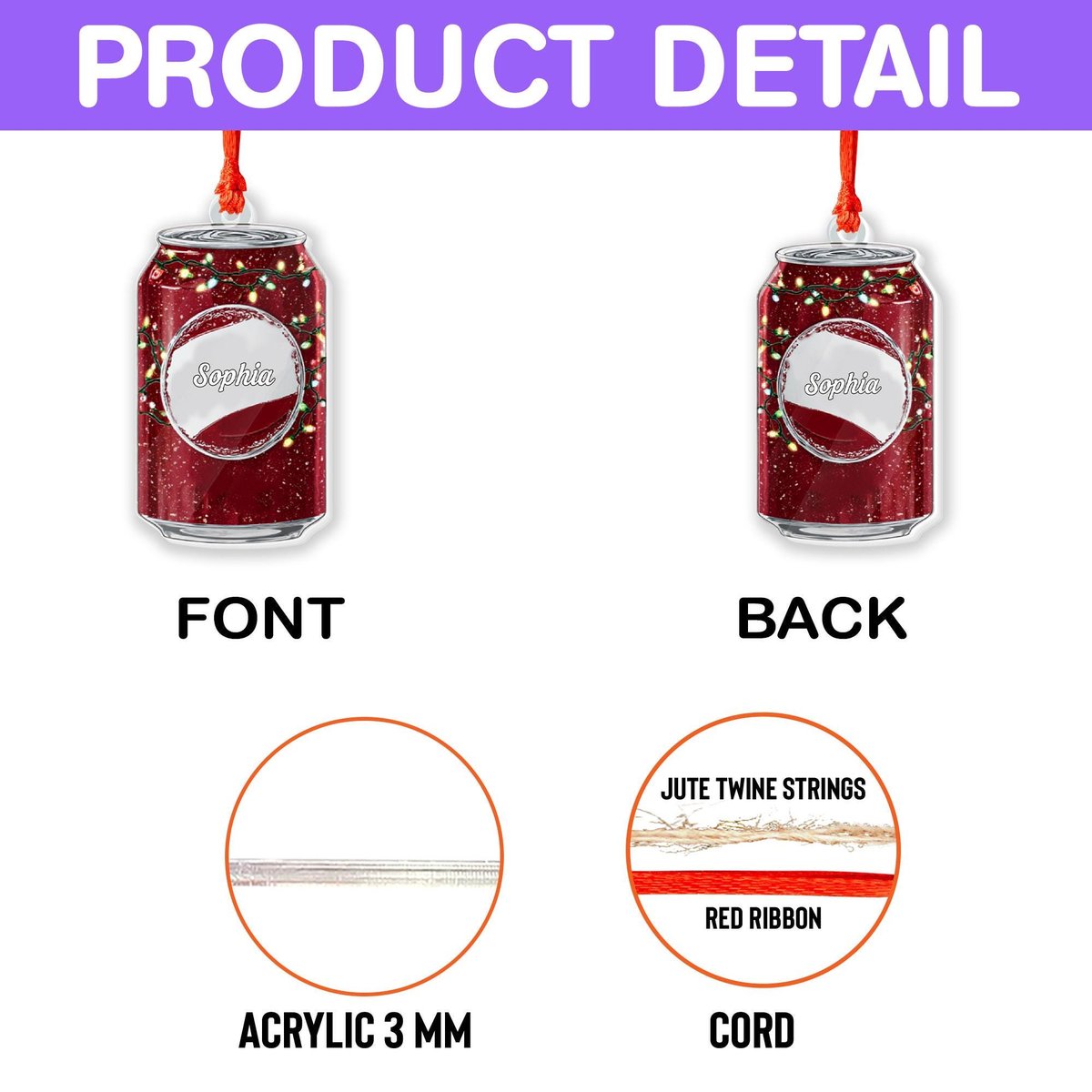 Personalized Soda Can Ornament Custom Name Gift Drink Lover Christmas Decor Beverage Can Ornament Funny Holiday Gift