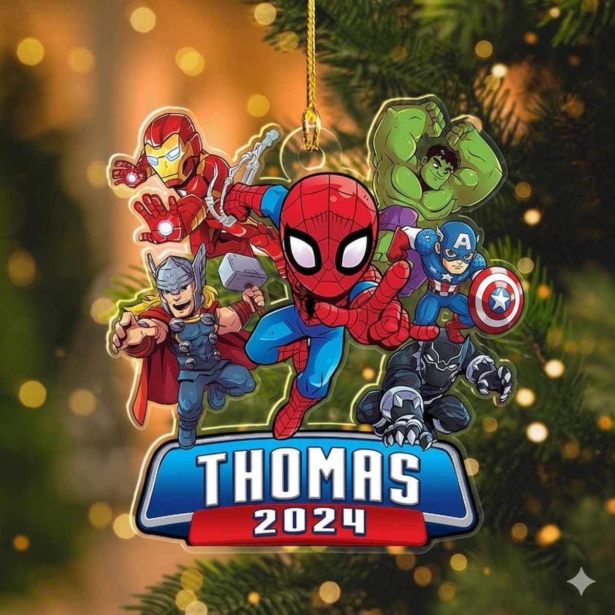 Personalized Superhero Ornament Spidermam Ornament Hulk Ornament Avengers Ornament Christmas Gift For Kid Ironman Black Panther Thor