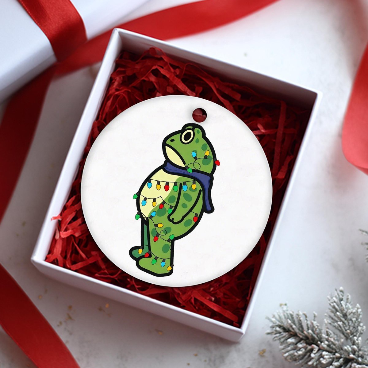 Political Frog Ornament 2025 Merry Resistmas Ceramic Tree Decor Funny Double Sided Christmas Gift for Protesters or Independent Minds