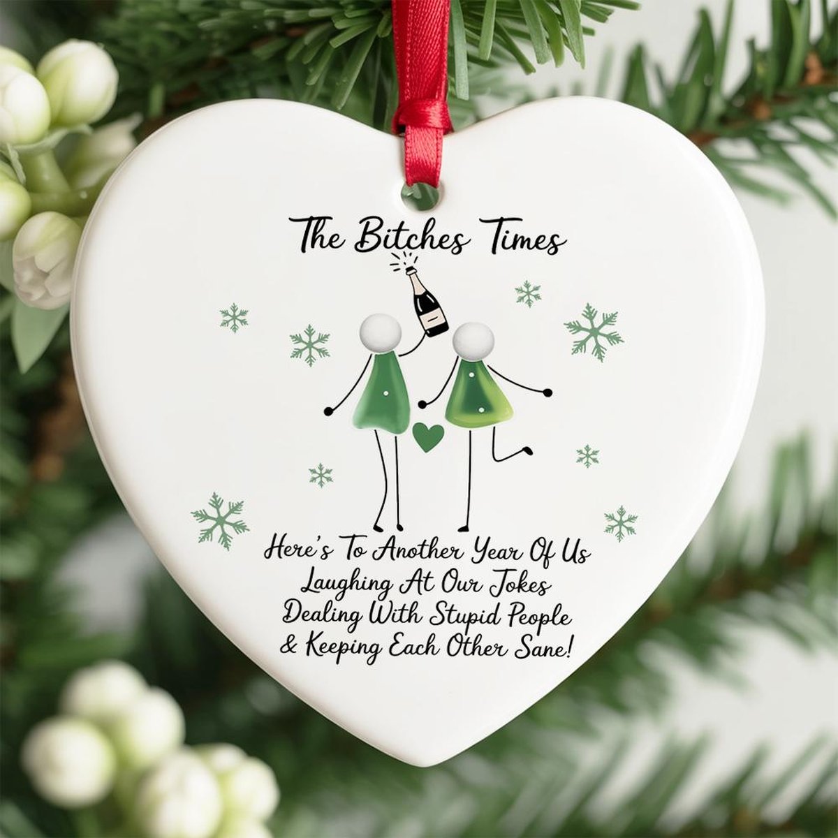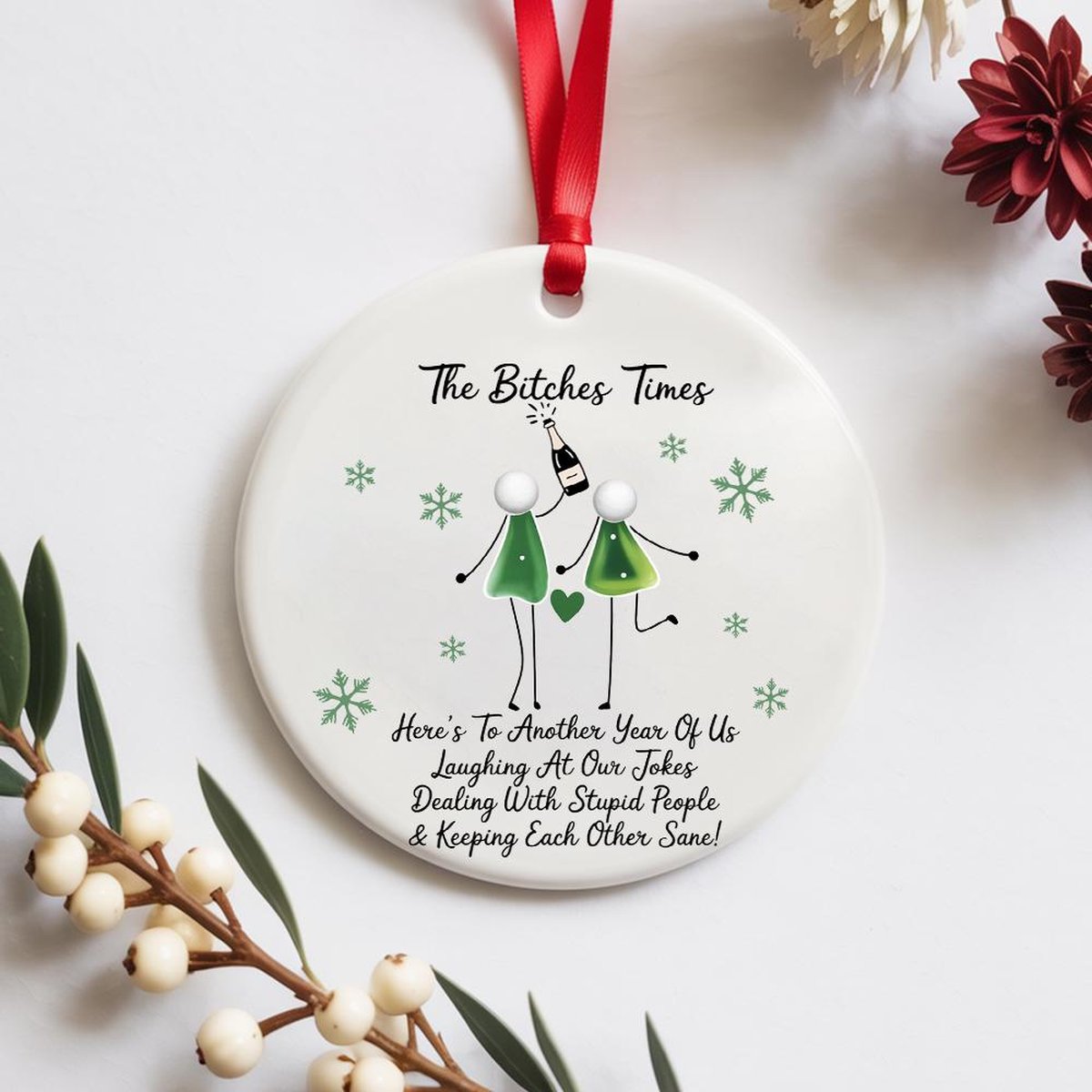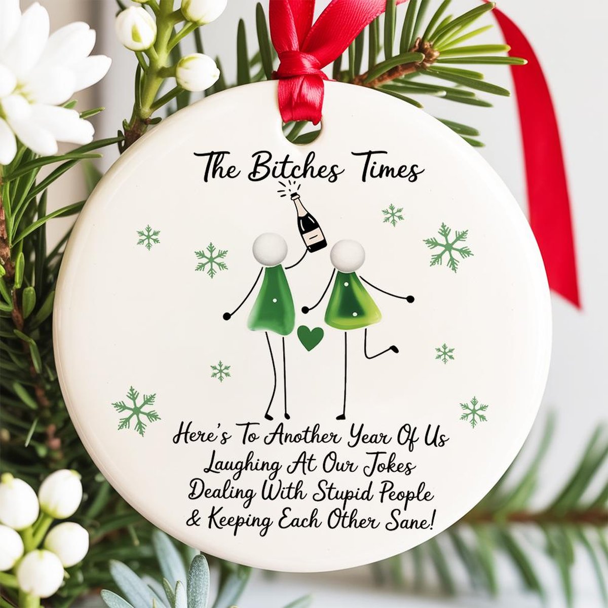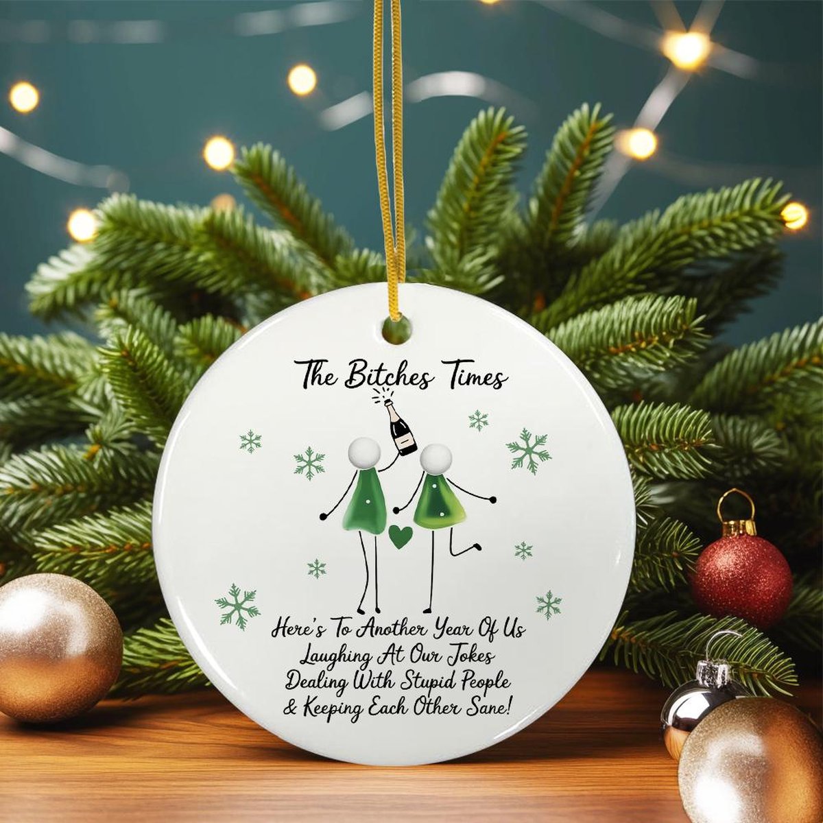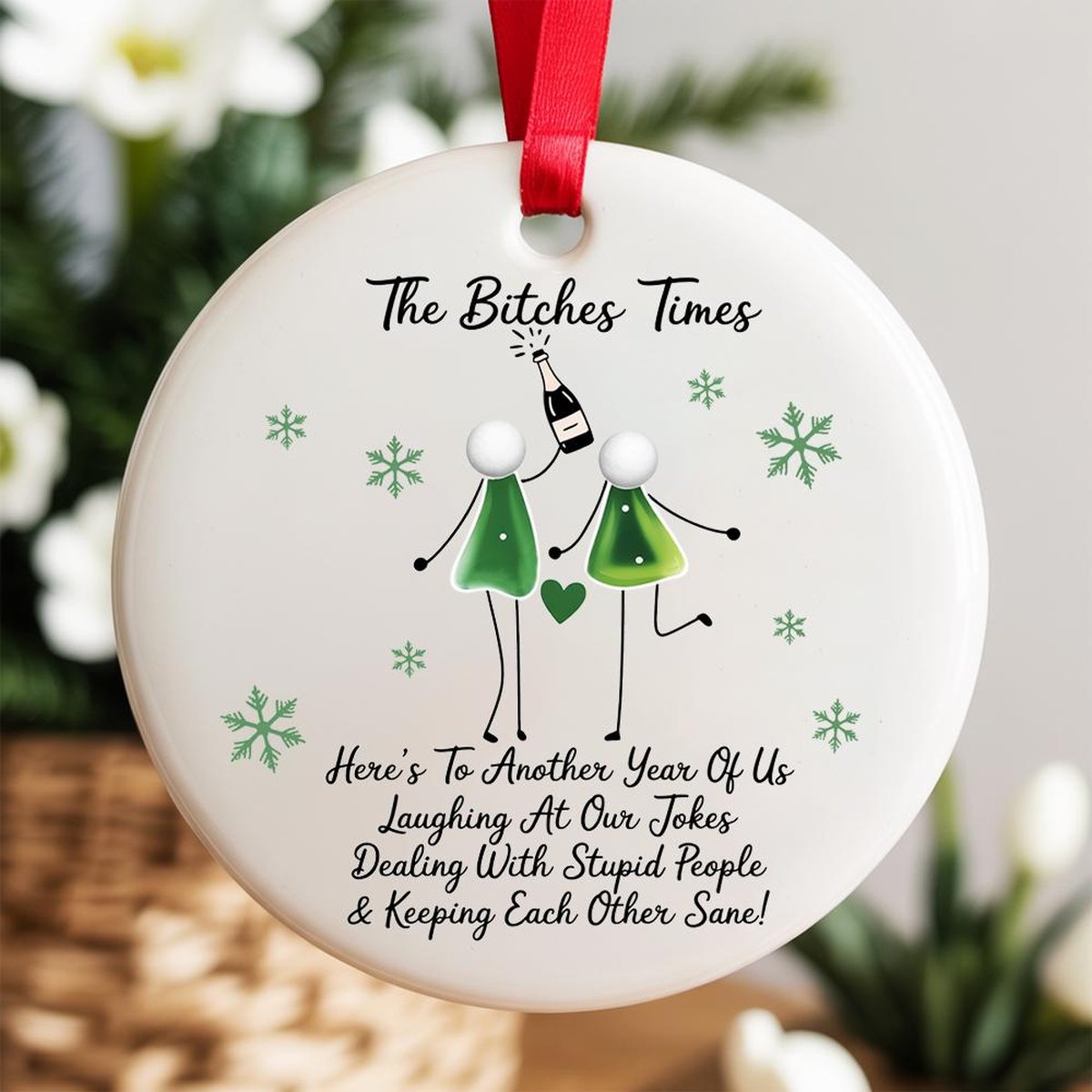 The Btches Times Custom Friendship Ornament Funny Sea Glass Christmas Gift for Besties Laughing at Our Own Jokes Keepsake
