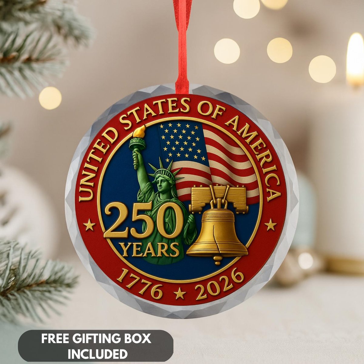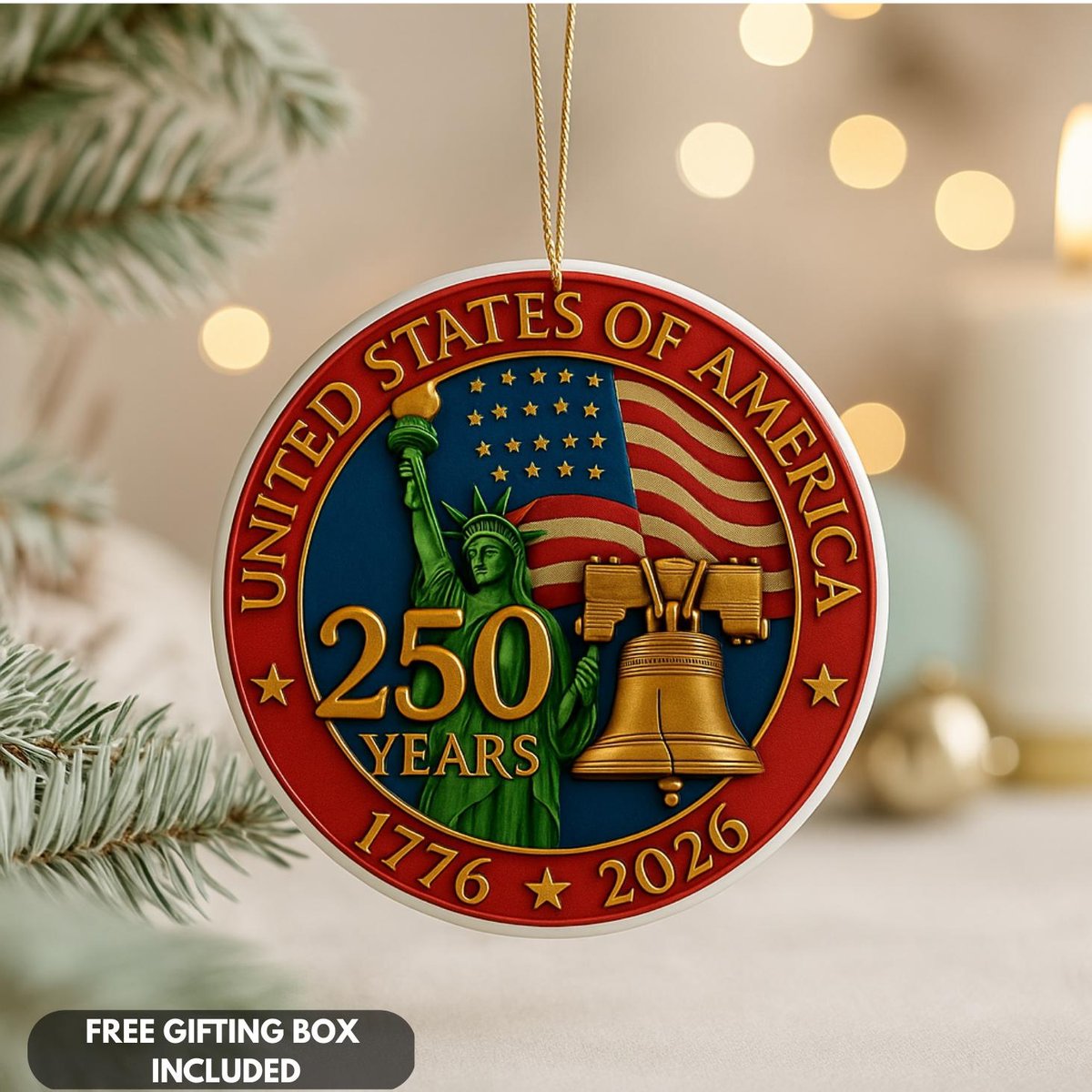 USA 250th Anniversary Ornament Ceramic Glass Coin Options 1776-2026 Patriotic Christmas Decoration