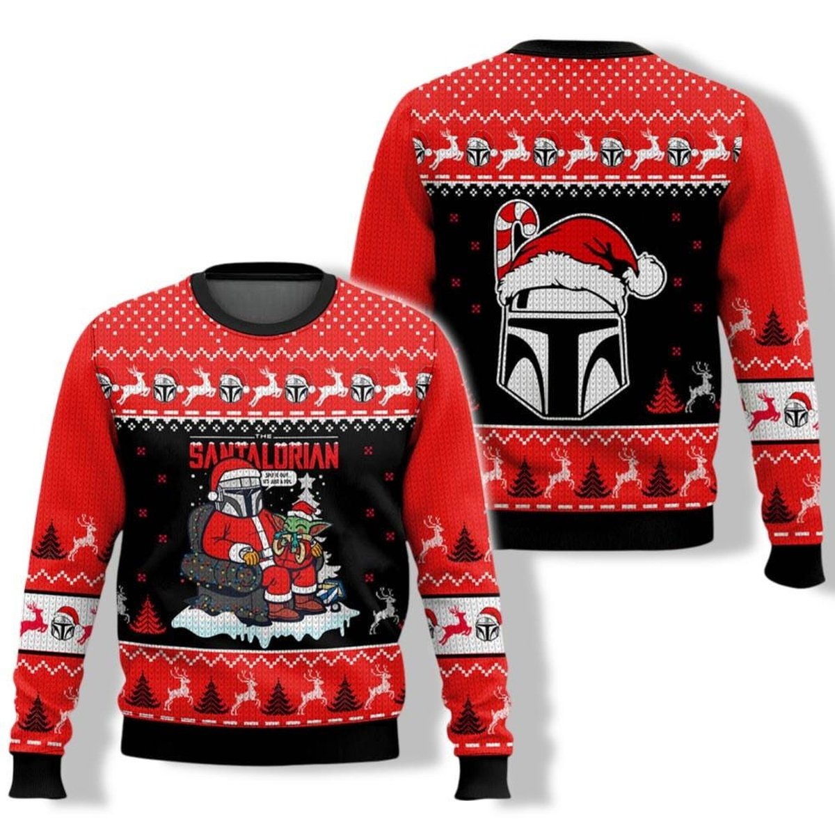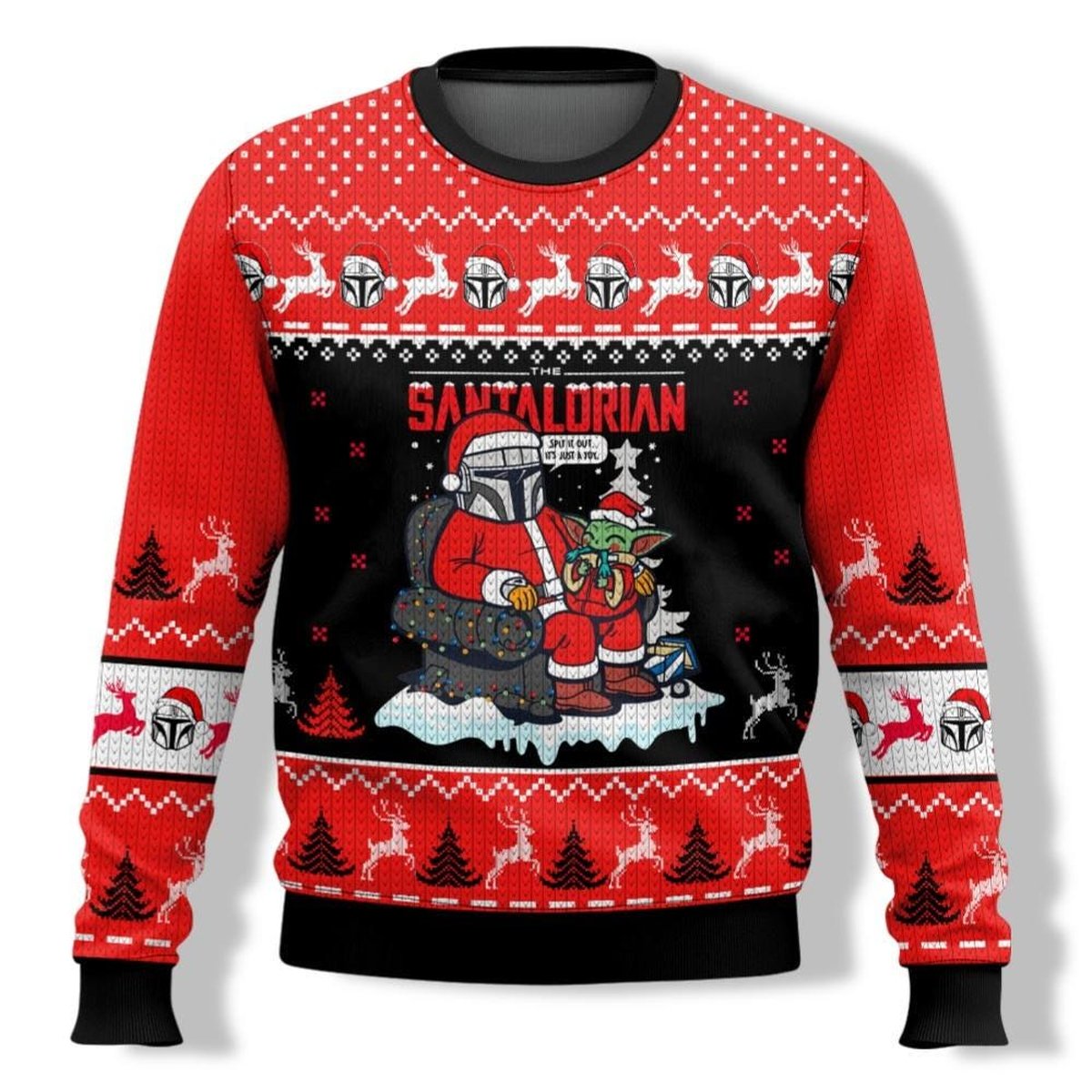 The Mandalorian Santa Grogu Santalorian Christmas Ugly Sweater Red Black Jumper