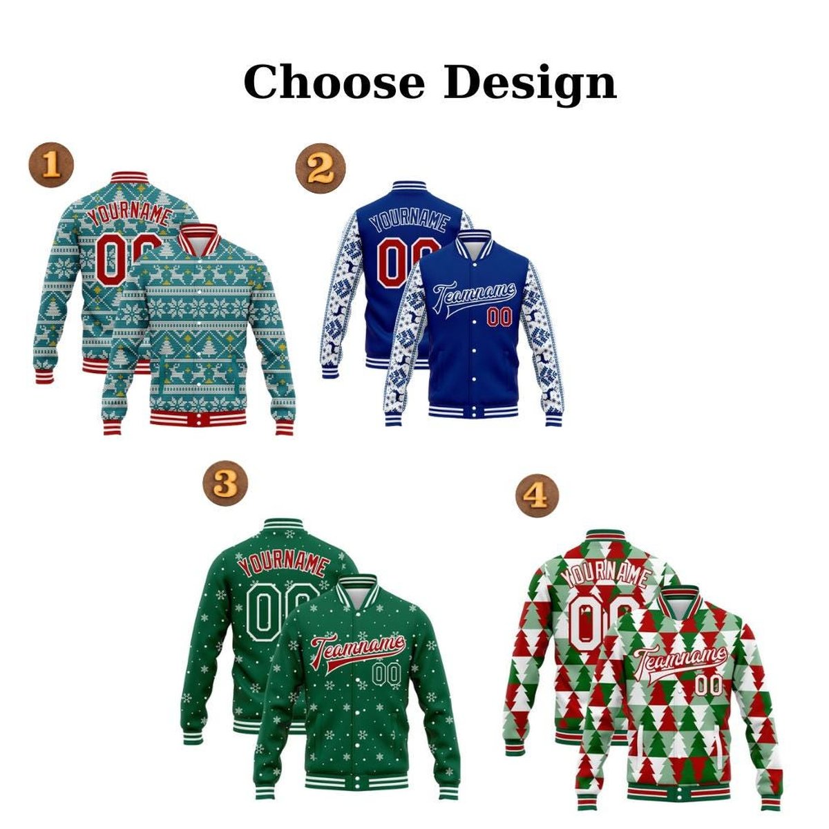Custom Ugly Christmas Varsity Jacket With Name And Number Personalized Holiday Sweater For Family Team Gift