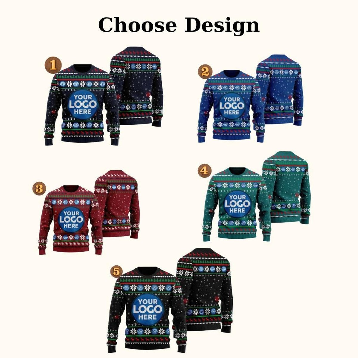 Custom Logo Ugly Christmas Sweater Personalized Company Holiday Party Pullover Team Gift Knit Jumper
