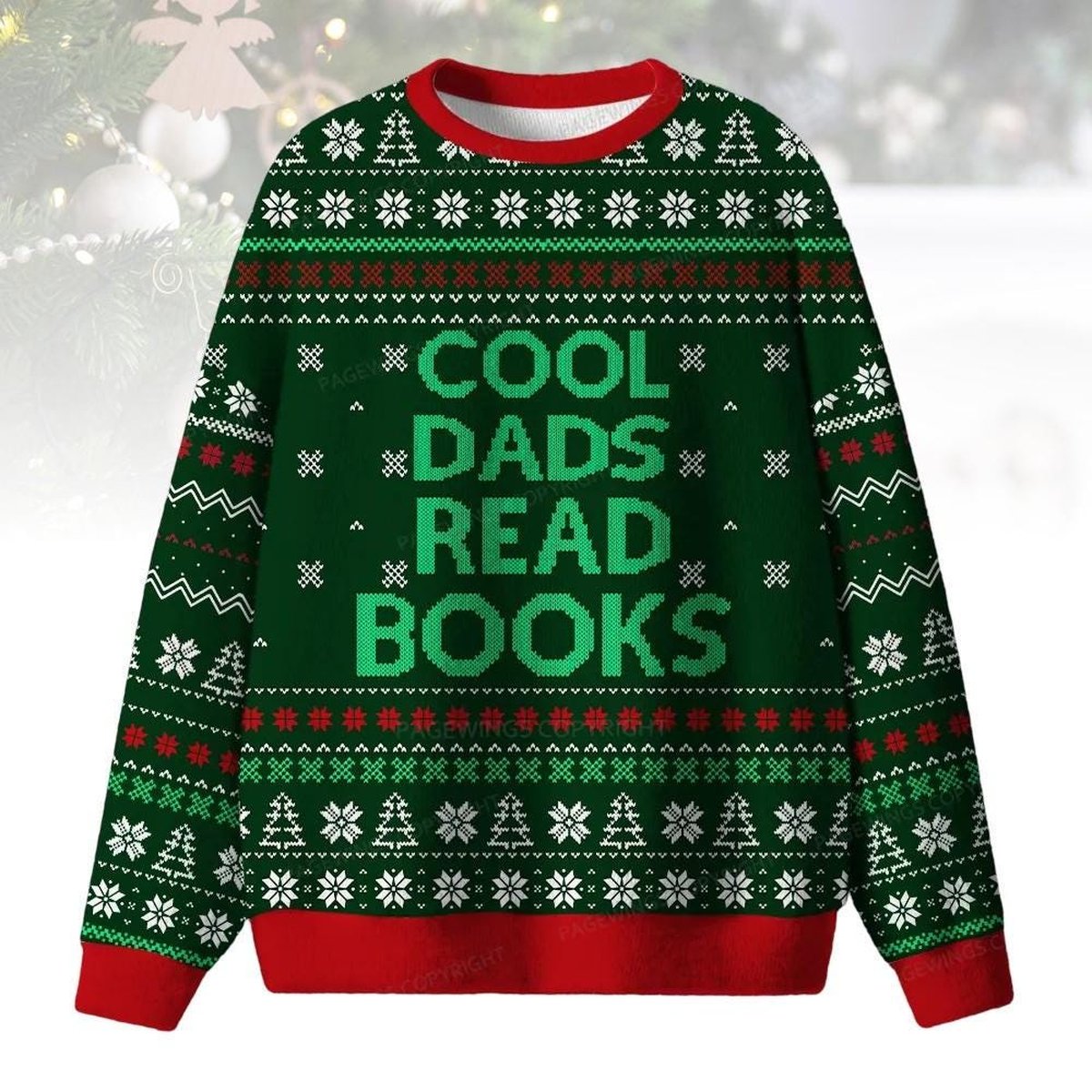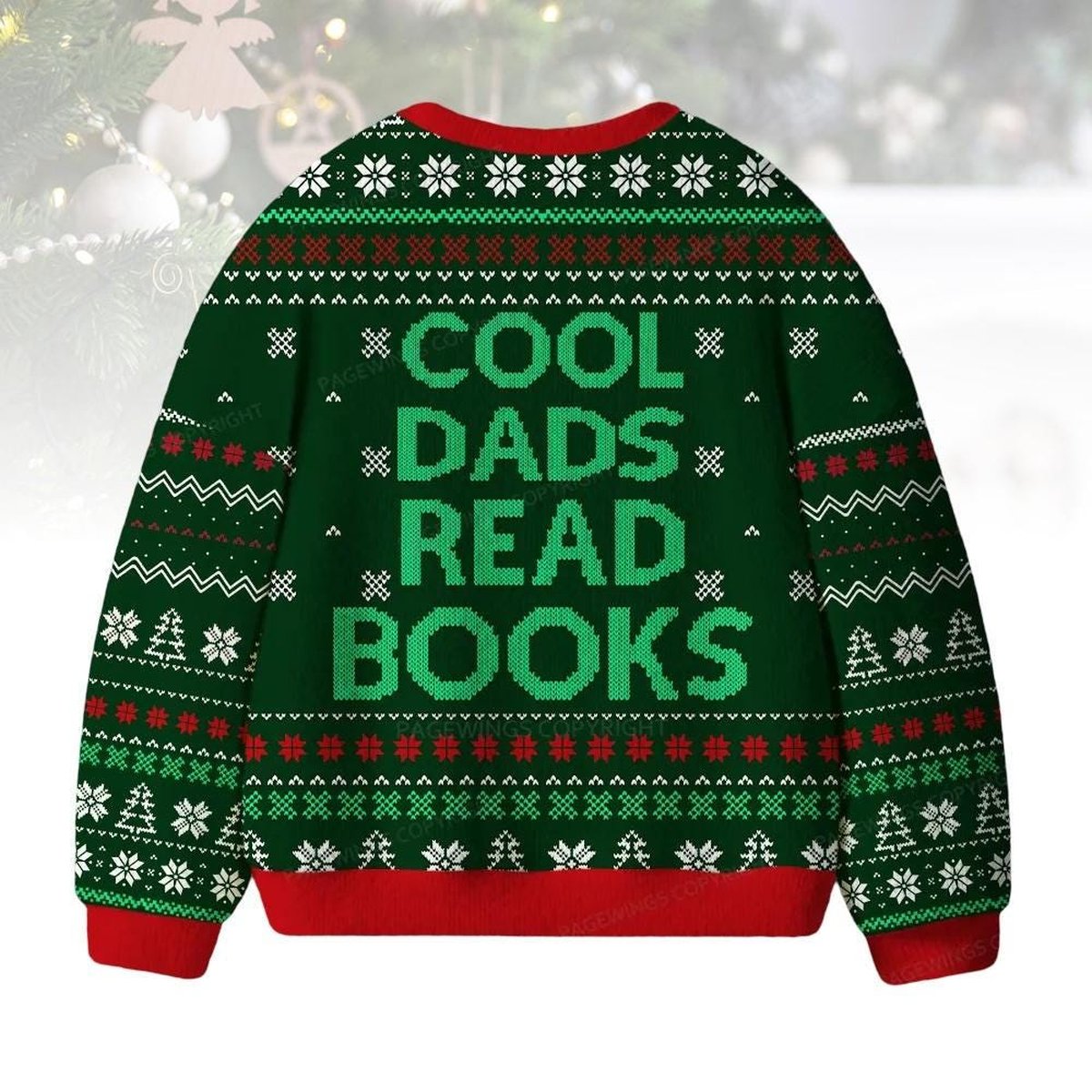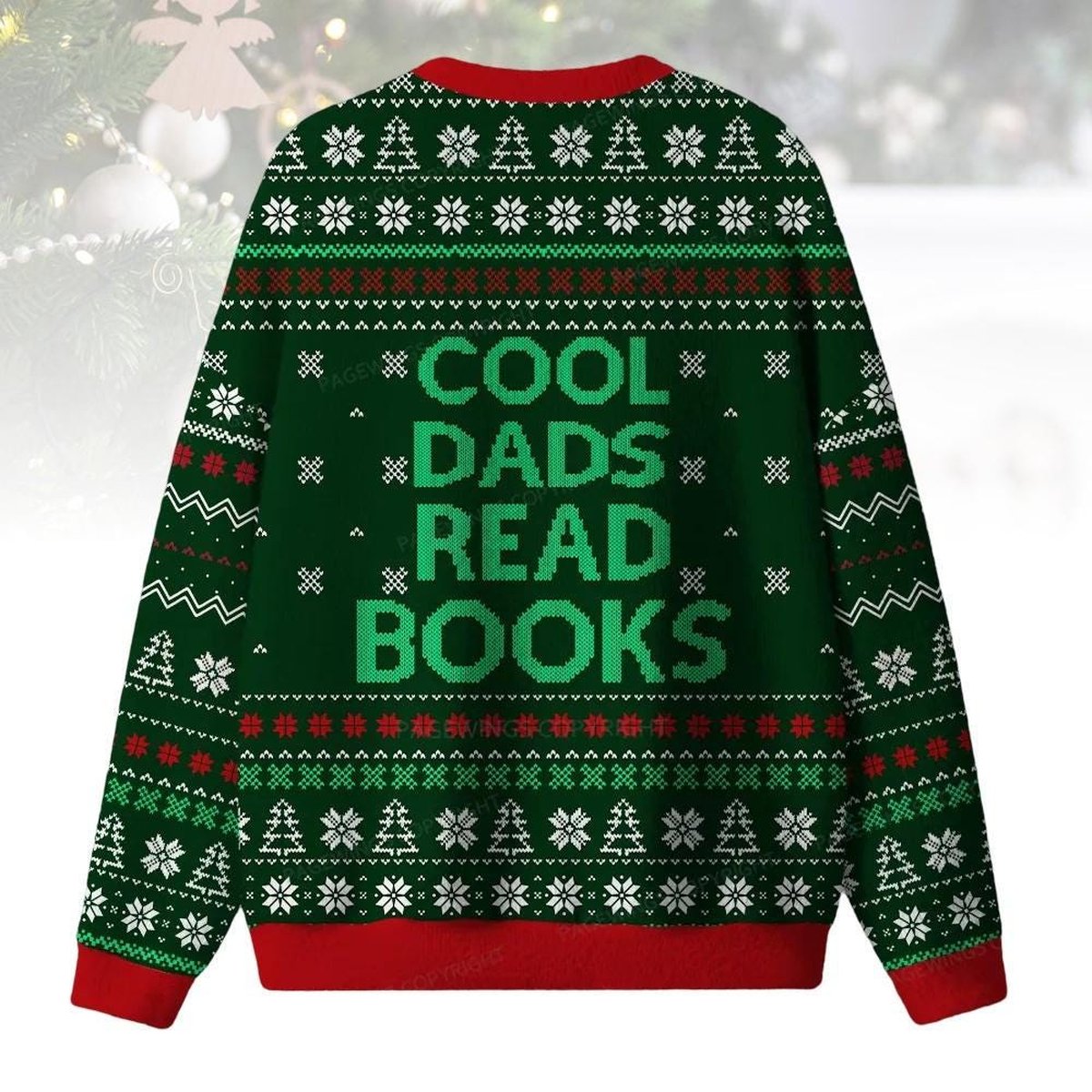 Cool Dads Read Books Christmas Green Ugly Sweater Funny Holiday Gift Knit Jumper