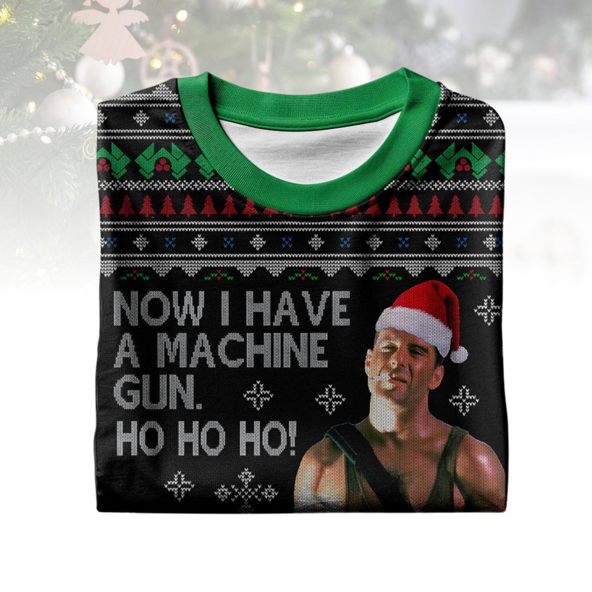 Die Hard Machine Gun Black Christmas Ugly Sweater Bruce Willis Movie Holiday Knit Jumper