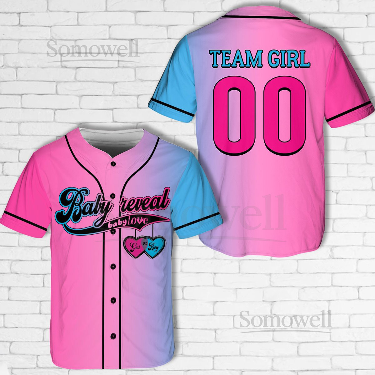 Personalized Baby Reveal Baseball Jersey Blue or Pink Baseball Jersey Gender Reveal Jersey Team Boy Team Girl Jersey Reveal Party Jersey_020