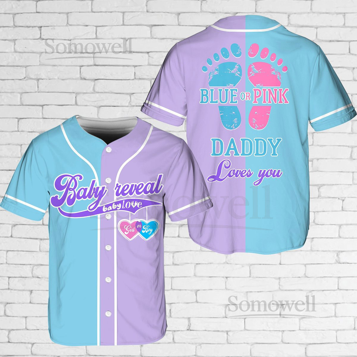 Personalized Baby Reveal Baseball Jersey Blue or Pink Baseball Jersey Gender Reveal Jersey Team Boy Team Girl Jersey Reveal Party Jersey_022