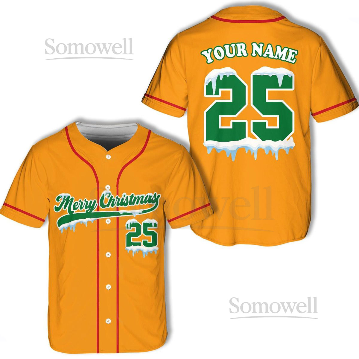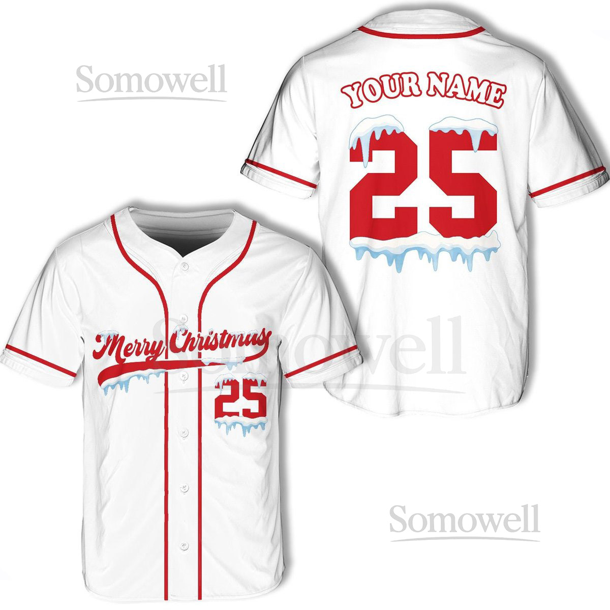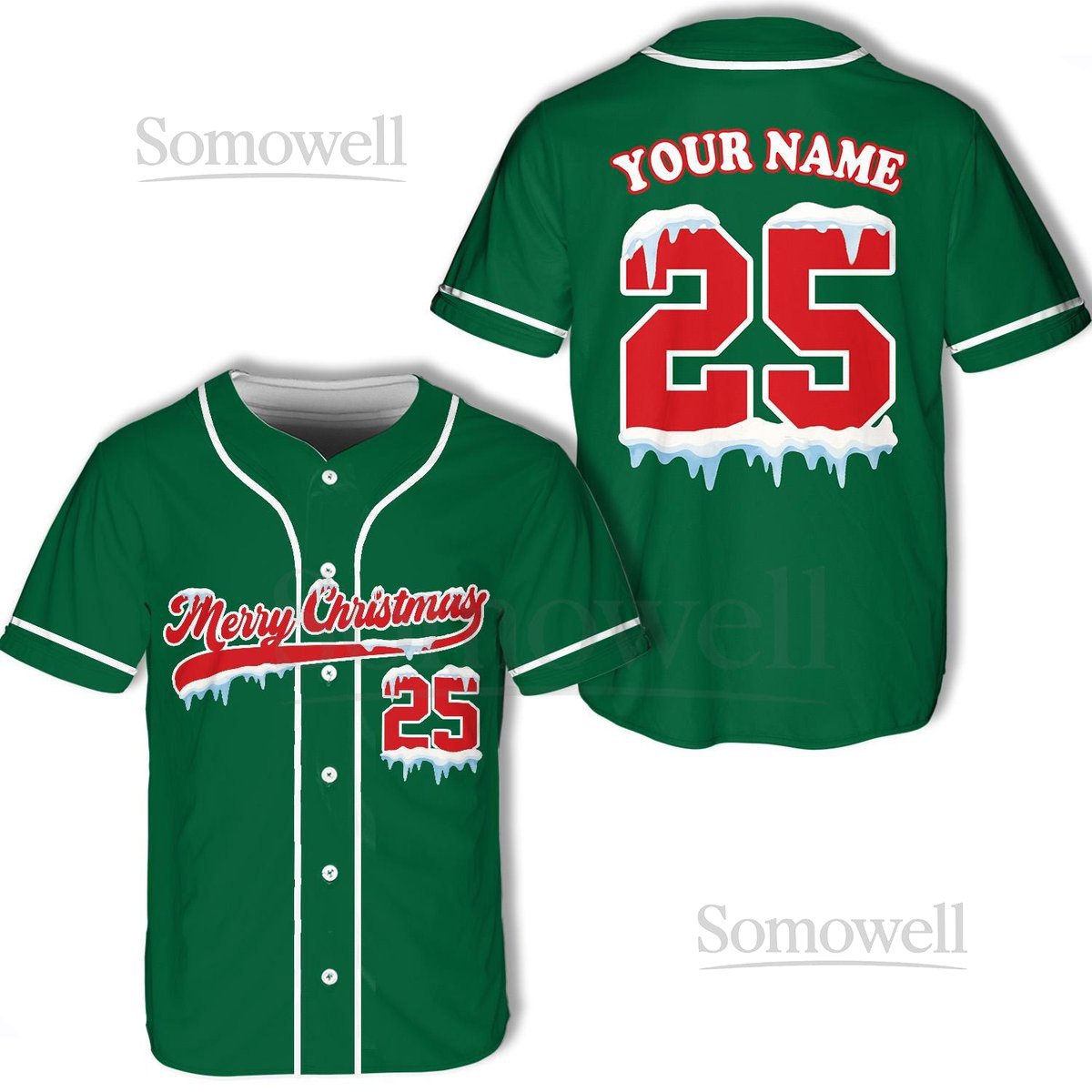 Personalized Christmas Baseball Jersey Adult Kid Youth Custom Name Number Holiday Jersey Xmas Gift Team Uniform Merry Christmas Shirt_062