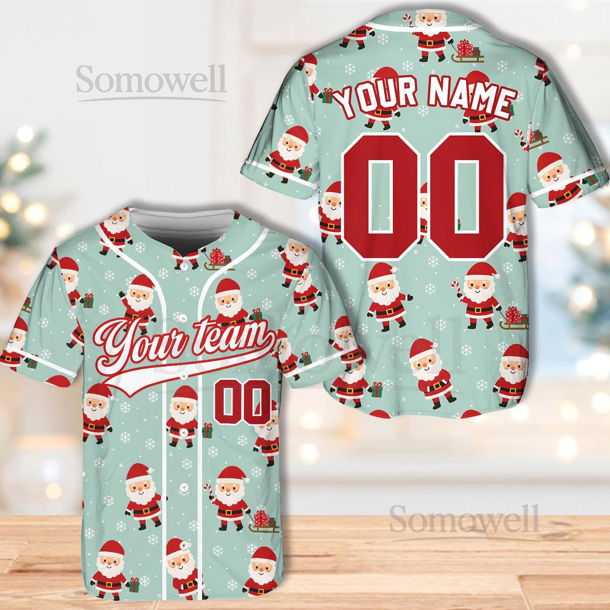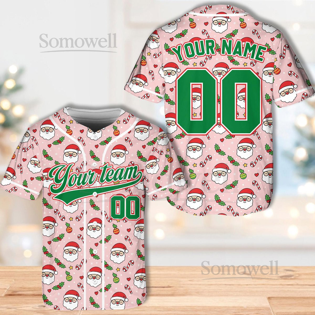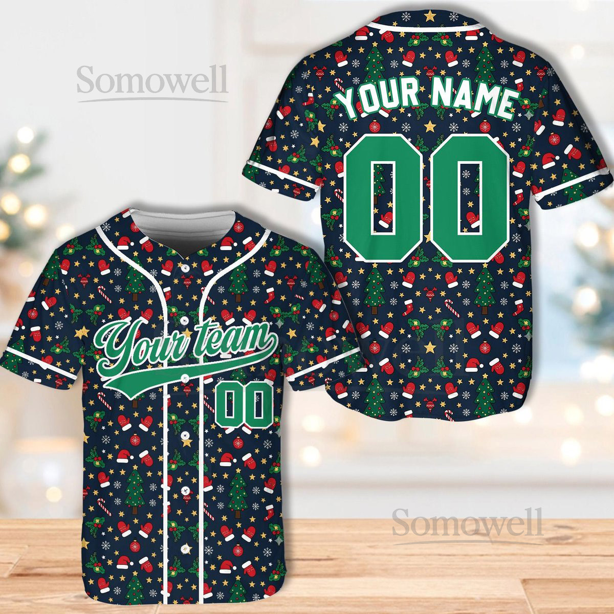 Personalized Christmas Baseball Jersey Adult Kid Youth Custom Name Number Holiday Jersey Xmas Gift Team Uniform Merry Christmas Shirt_065