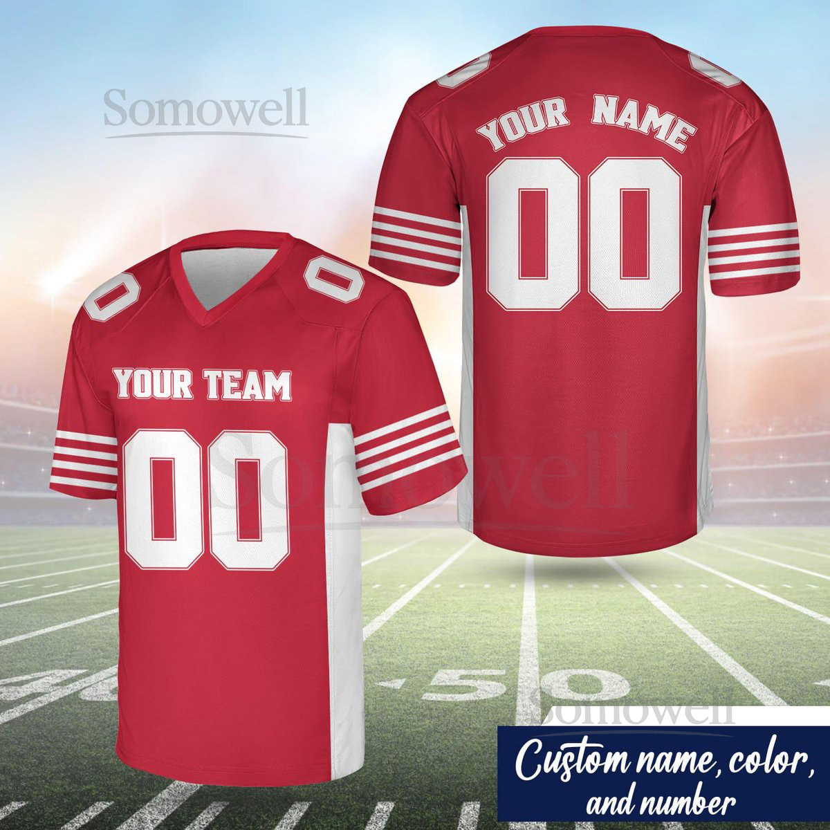 Personalized Football Team Custom Team Name And Number Football Jersey V-neck Short Sleeve Jersey Shirt Football Jerseys_109