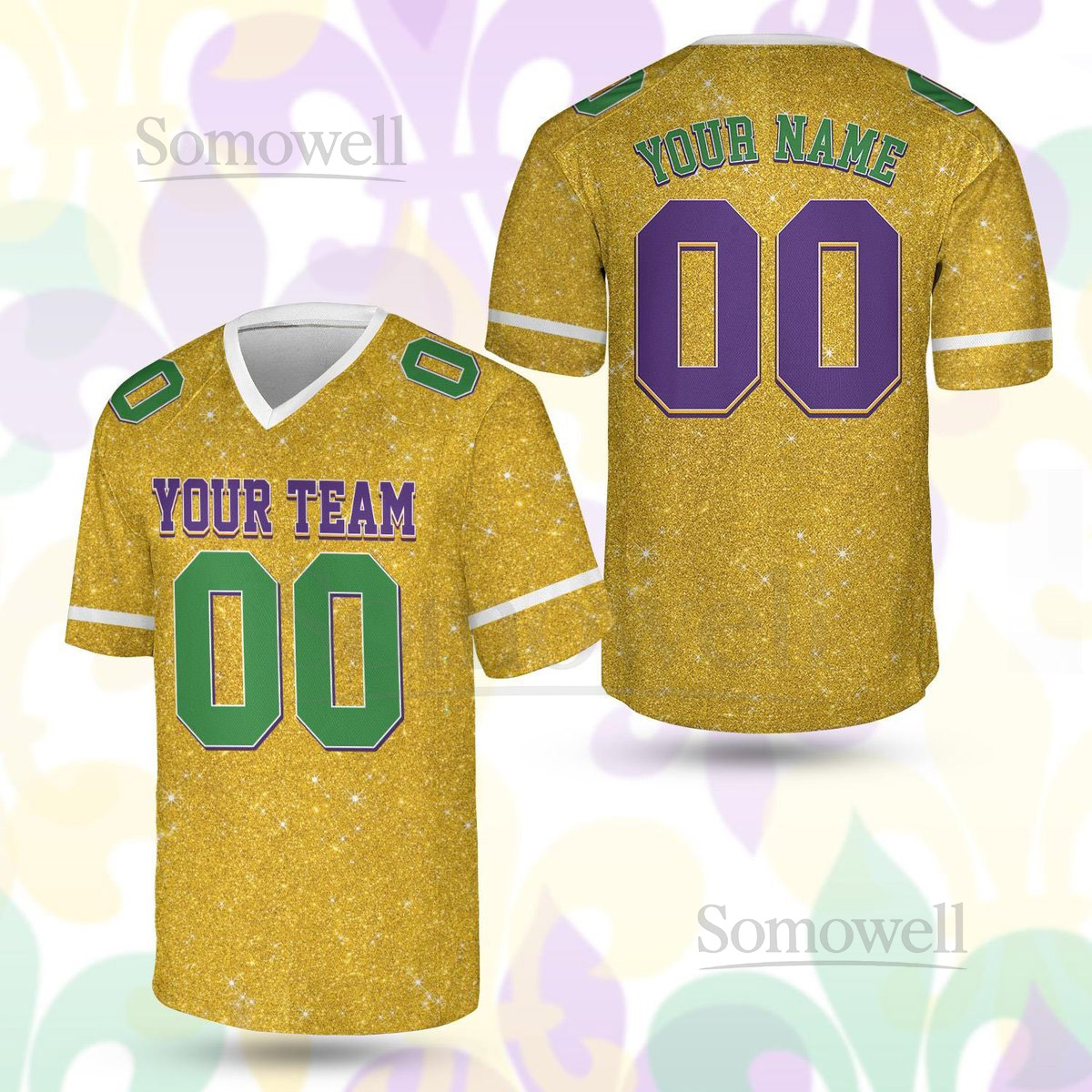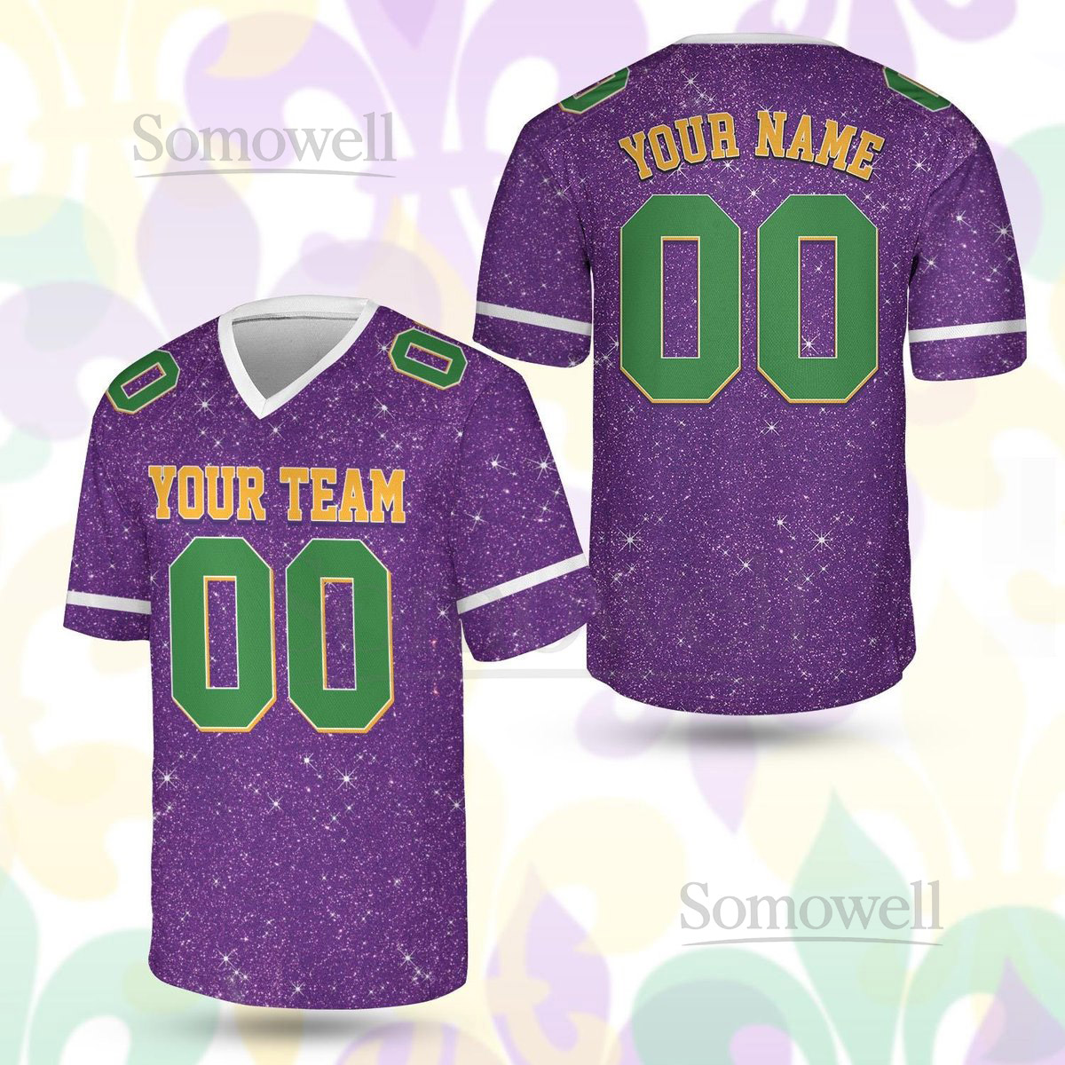 Personalized Glitter Mardi Gras Football Jersey Custom Name And Number Short Sleeve Jersey Mardi Gras Carnival Jersey Printed Glitter_129