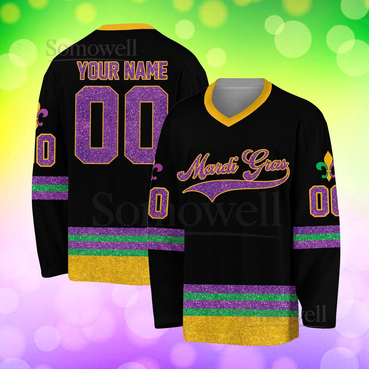 Personalized Glitter Mardi Gras Hockey Jersey Custom Name Mardi Gras Jersey Hockey Jersey Uniform For Hockey Fans Mardi Gras Outfit_132