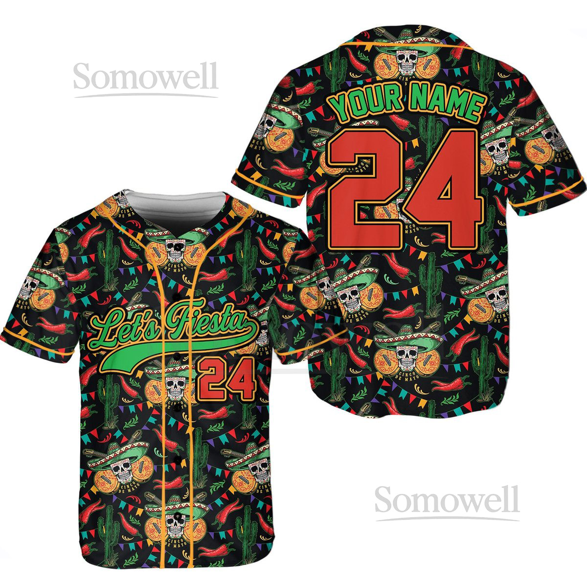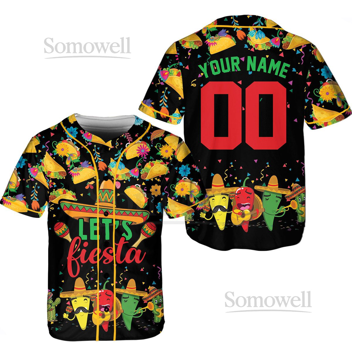 Personalized Let39s Fiesta Baseball Jersey Custom Name Cinco De Mayo Baseball Jersey Shirt Baseball Jersey For Fiesta Squad Mexican Fiesta_202