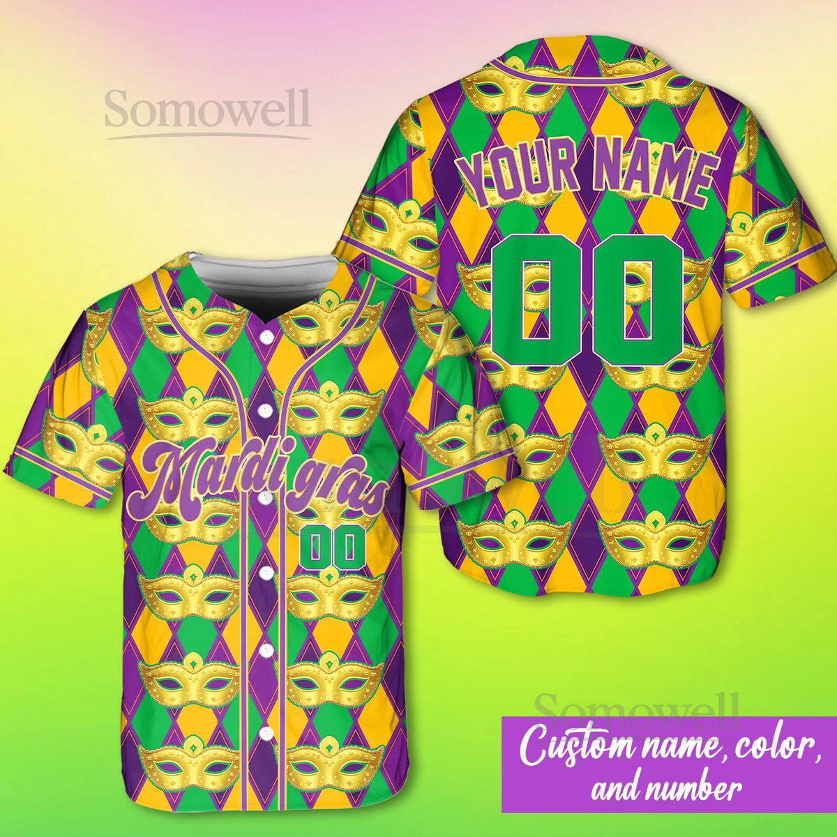 Personalized Mardi Gras Baseball Jersey Custom Name And Number Baseball Jersey Mardi Gras Carnival Jersey Gift For Family Matching_241
