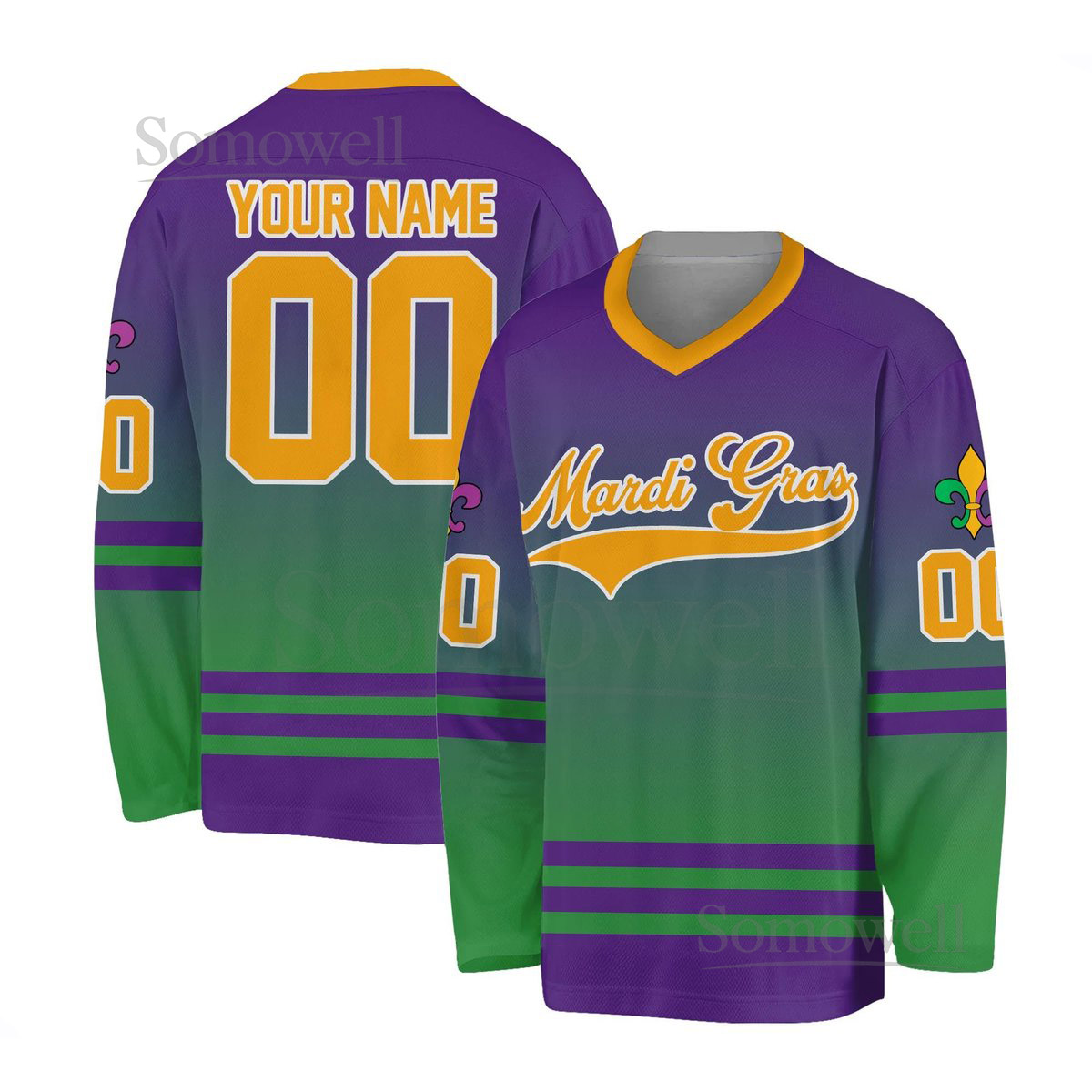 Personalized Mardi Gras Hockey Jersey Custom Name Mardi Gras Hockey Jersey Hockey Jersey Uniform For Hockey Fans Mardi Gras Outfit_272